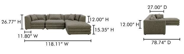 BNIB - Moe's Lowtide 4-Piece Modular Sectional w/curved ottoman - Stone Tweed - Retails: $7999 - picture shown is of straight ottoman - This lot includes curved ottoman
