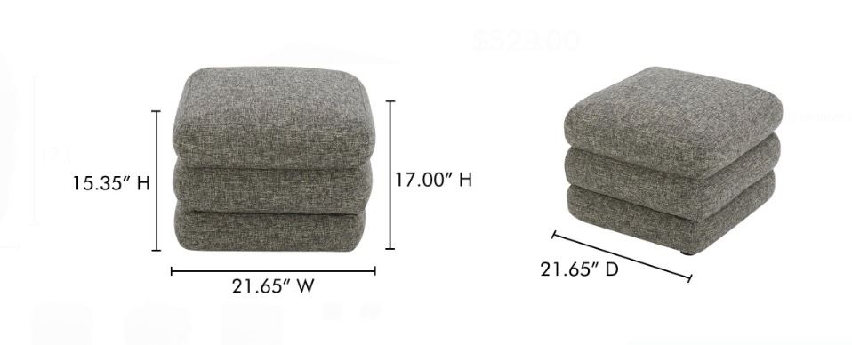 BNIB Moe's - Lowtide Stool Stone Tweed - 21.65 x 21.65 x 15.35in - Retail Price: $529 - KQ-1034-37-CAN