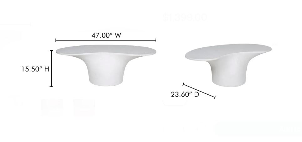 BNIB Moe's - Yumi Outdoor Coffee Table White - 47 x 24 x 15.5 - Retail Price: $1,399.00 - JK-1017-18