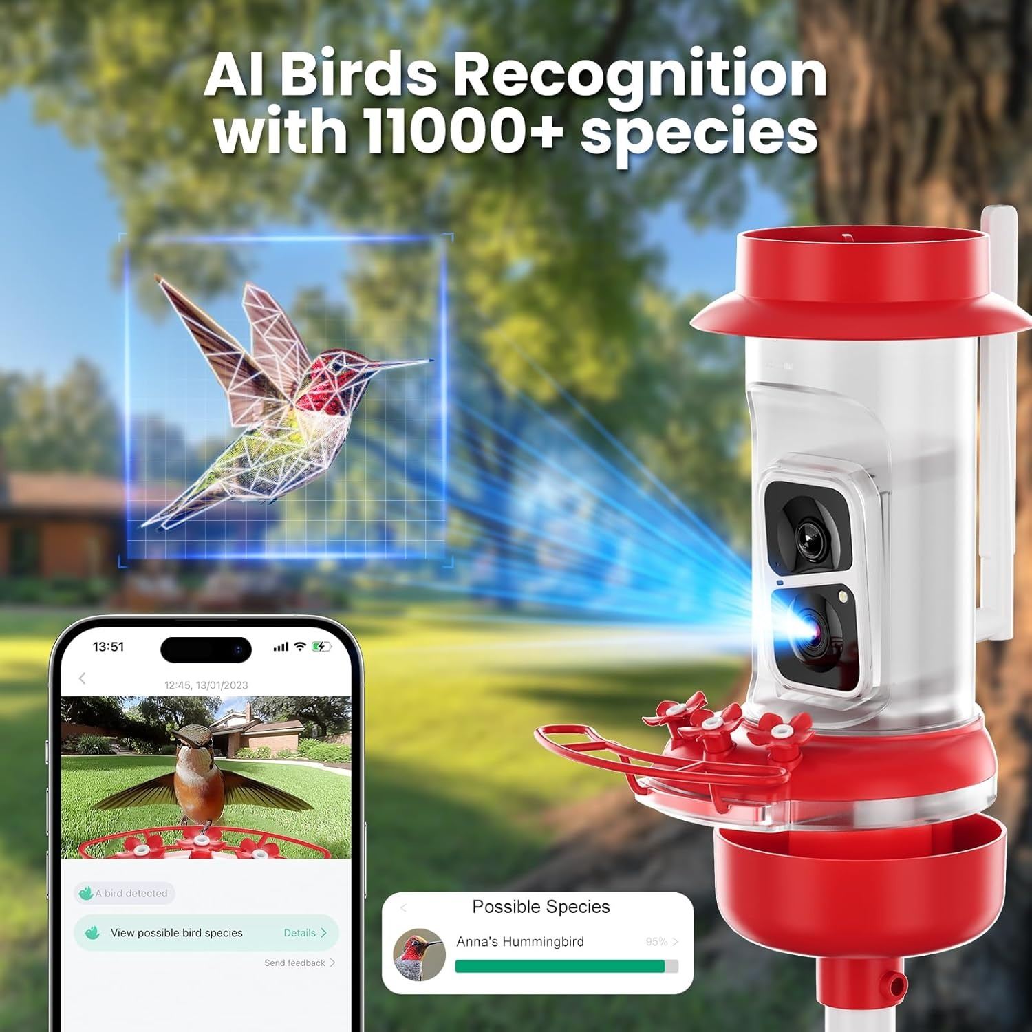 BNIB Soliom Hummingbird Feeder with Camera, Smart Bird Feeder Camera with 2K Live View AI Identify Species, Leak Proof & Ant Moat & Bee Proof, Outdoor Pole/Hook Hanging Retail $120