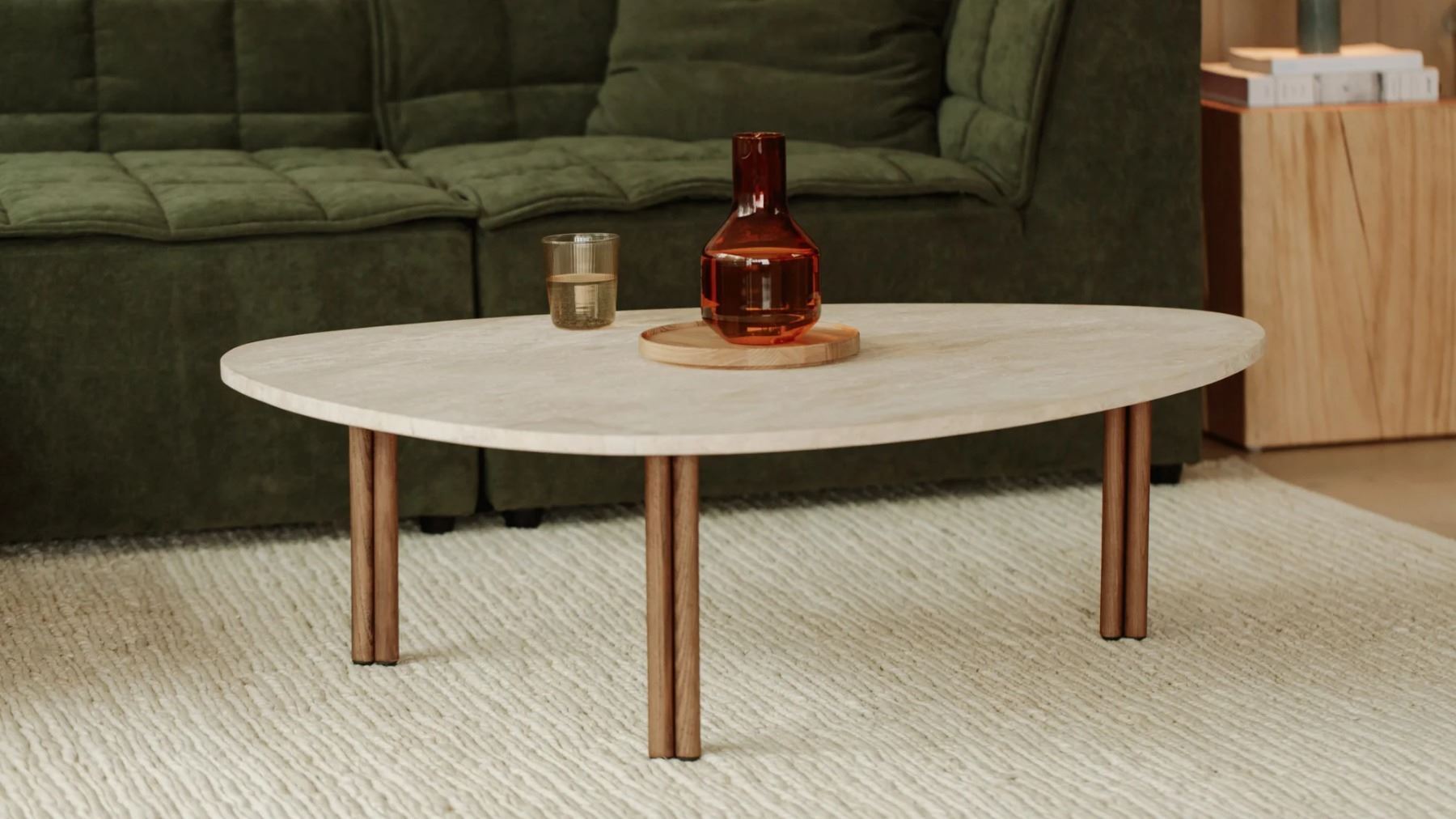BNIB Sundays's - Better Together Coffee Table Large Beige Travertine/Walnut Stained Ash - 32 x 42 x 13 - Retail Price: $1,250.00 - COF-EW-008-021-0