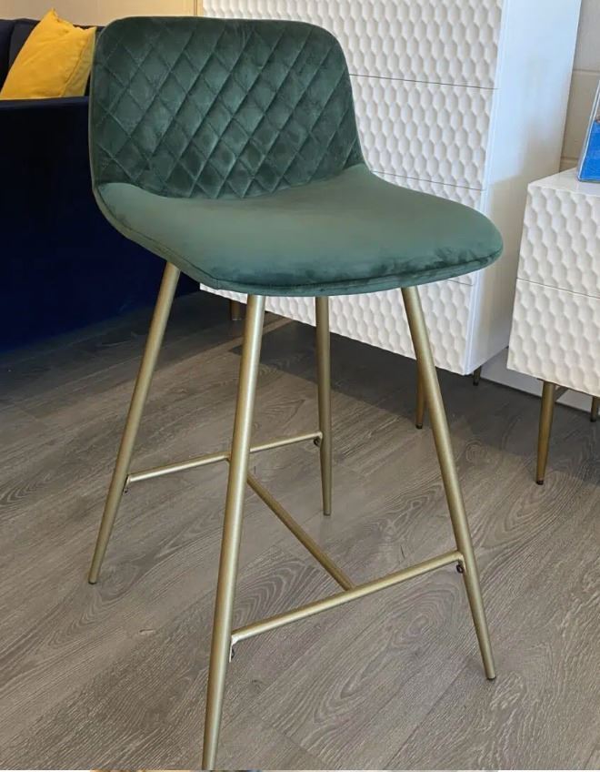 Brand new in box. set of four bar chairs with velvet upholstery or white leather and sturdy metal legs. Selected variant: Group of 4 Bar Chair - Velvet Green.
