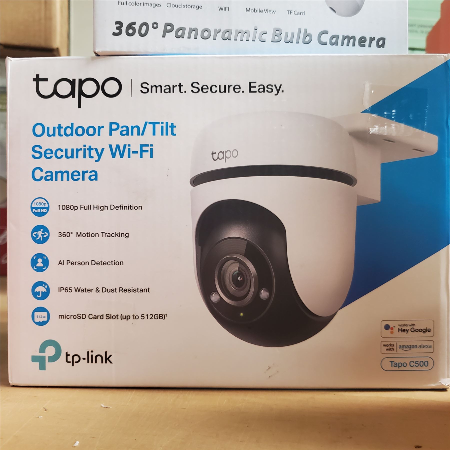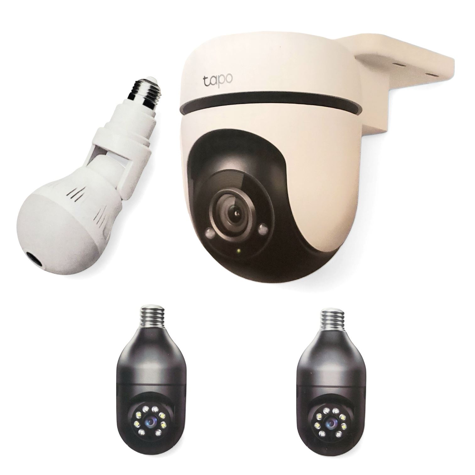 BNIB TP-Link Tapo Outdoor Pan/Tilt Camera, WiFi Light Bulb Cameras, and COSULAN 360 Panoramic Bulb Camera - RV: $150 CAD