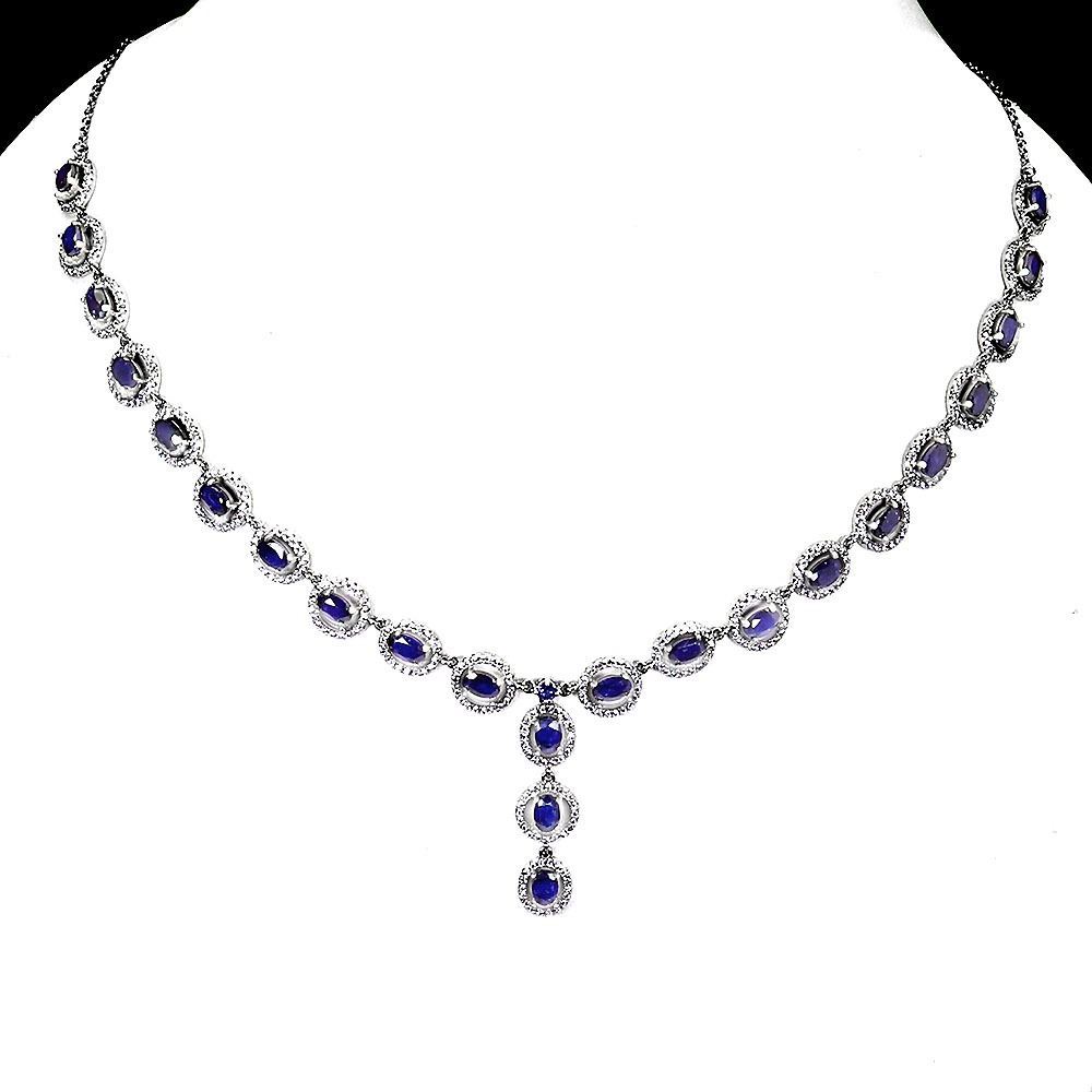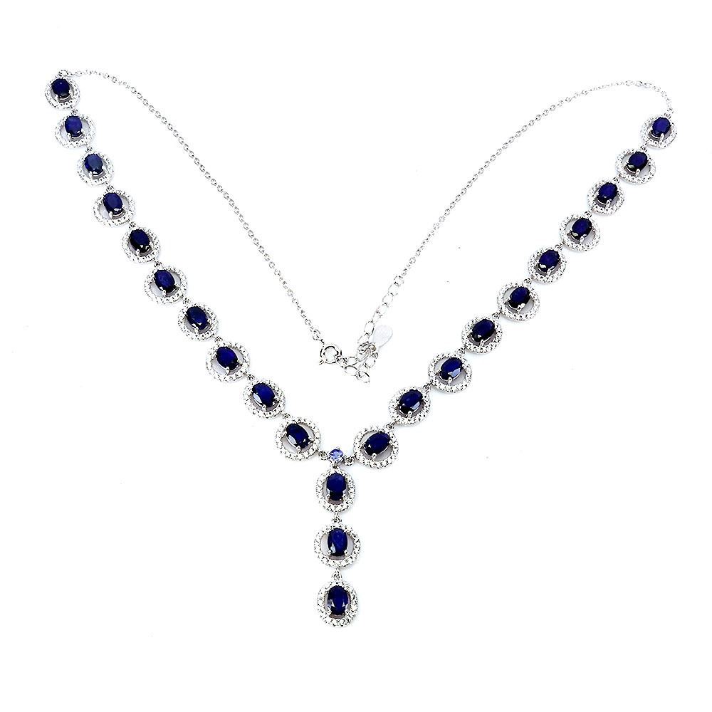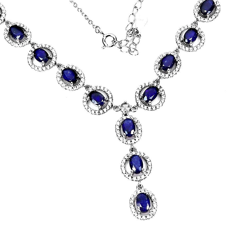 BRAND NEW SUPERB OVAL NATURAL BLUE SAPPHIRE NECKLESS 925 STERLING SILVER 14K WHITE GOLD PLATED - Appraisal Replacement Value CAD 3,623