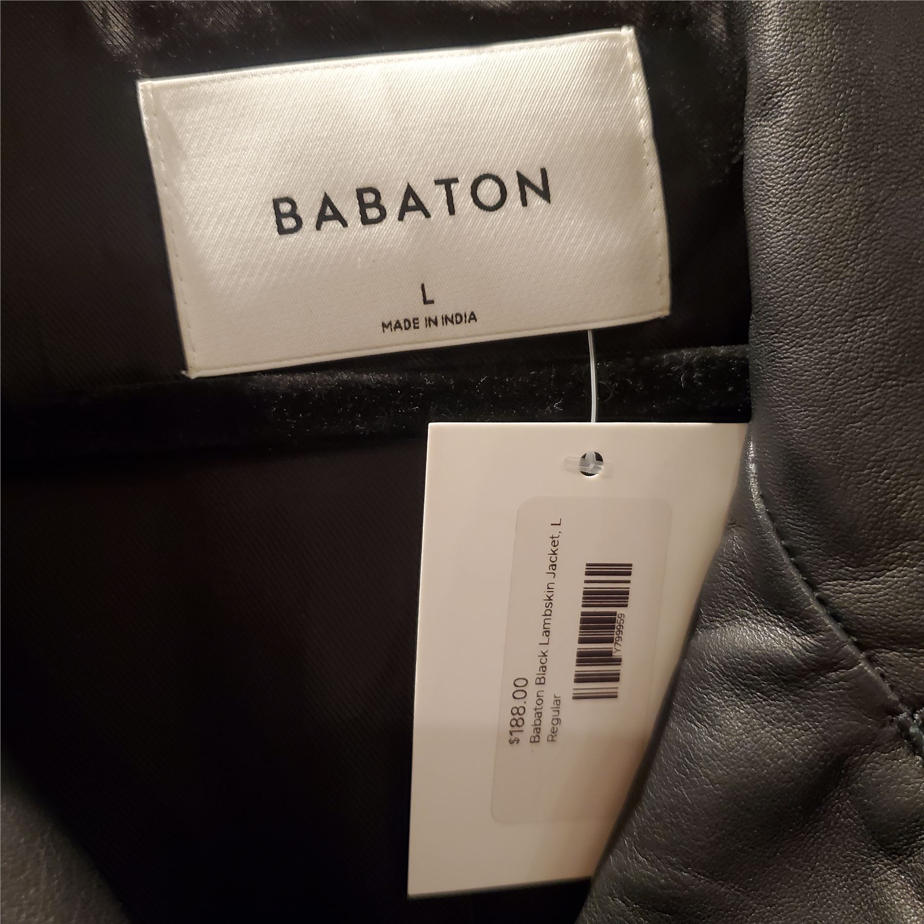 Babaton Black Lambskin Regular Jacket, Size L - R.V. $188