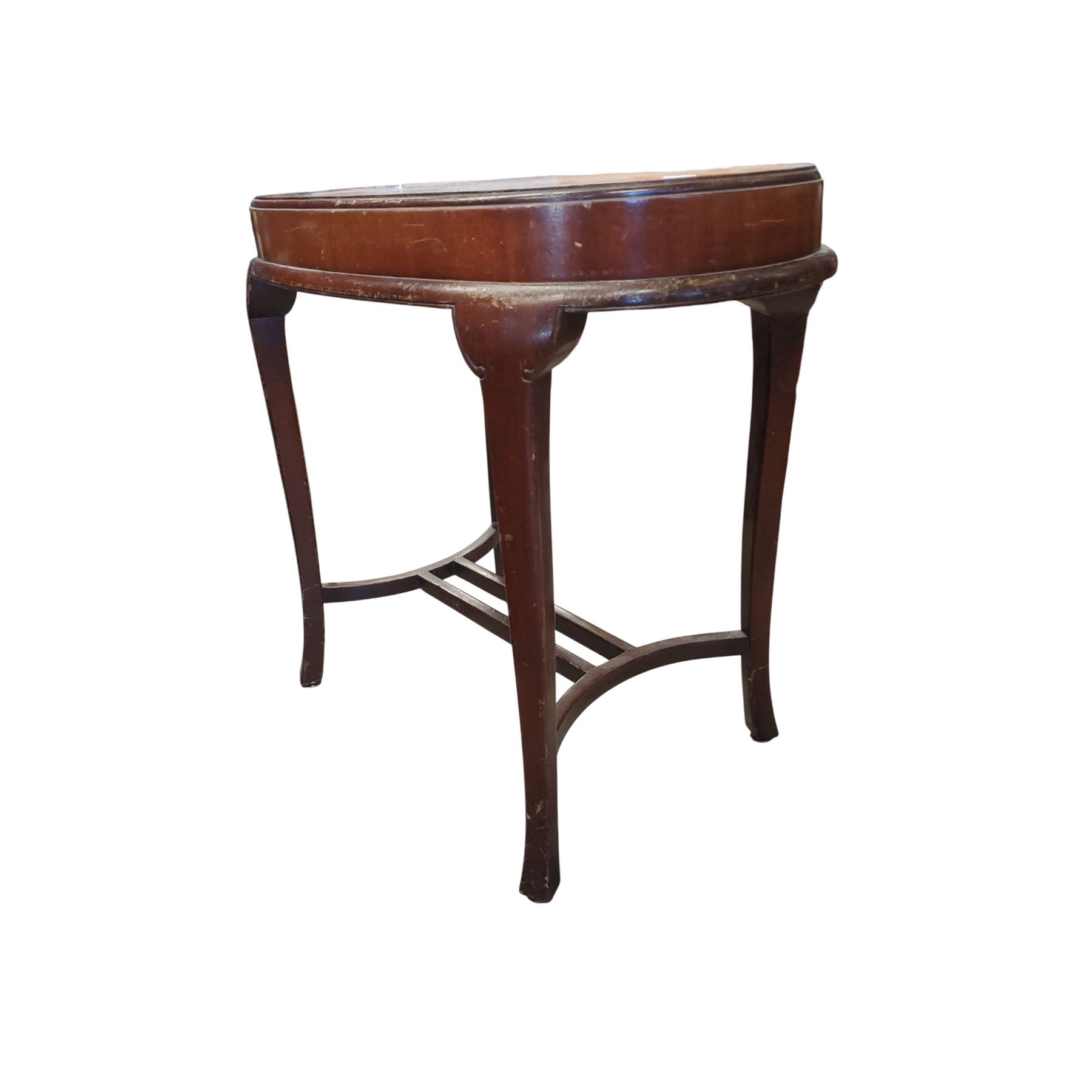 Baetz Bros oval wooden side table made in Kitchener Ontario. Features an oval tabletop, measuring 27x17 inches, and stands 24.5-Inch tall. Canadian craftsmanship. Item is as pictured.