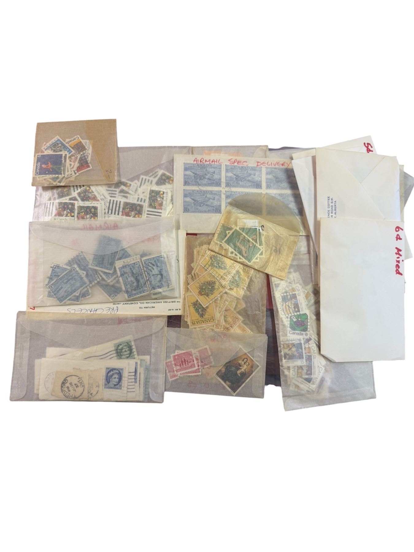 Bag of Canceled Canadian Stamps * Including 17� Airmail Stamps and War Tax Stamps