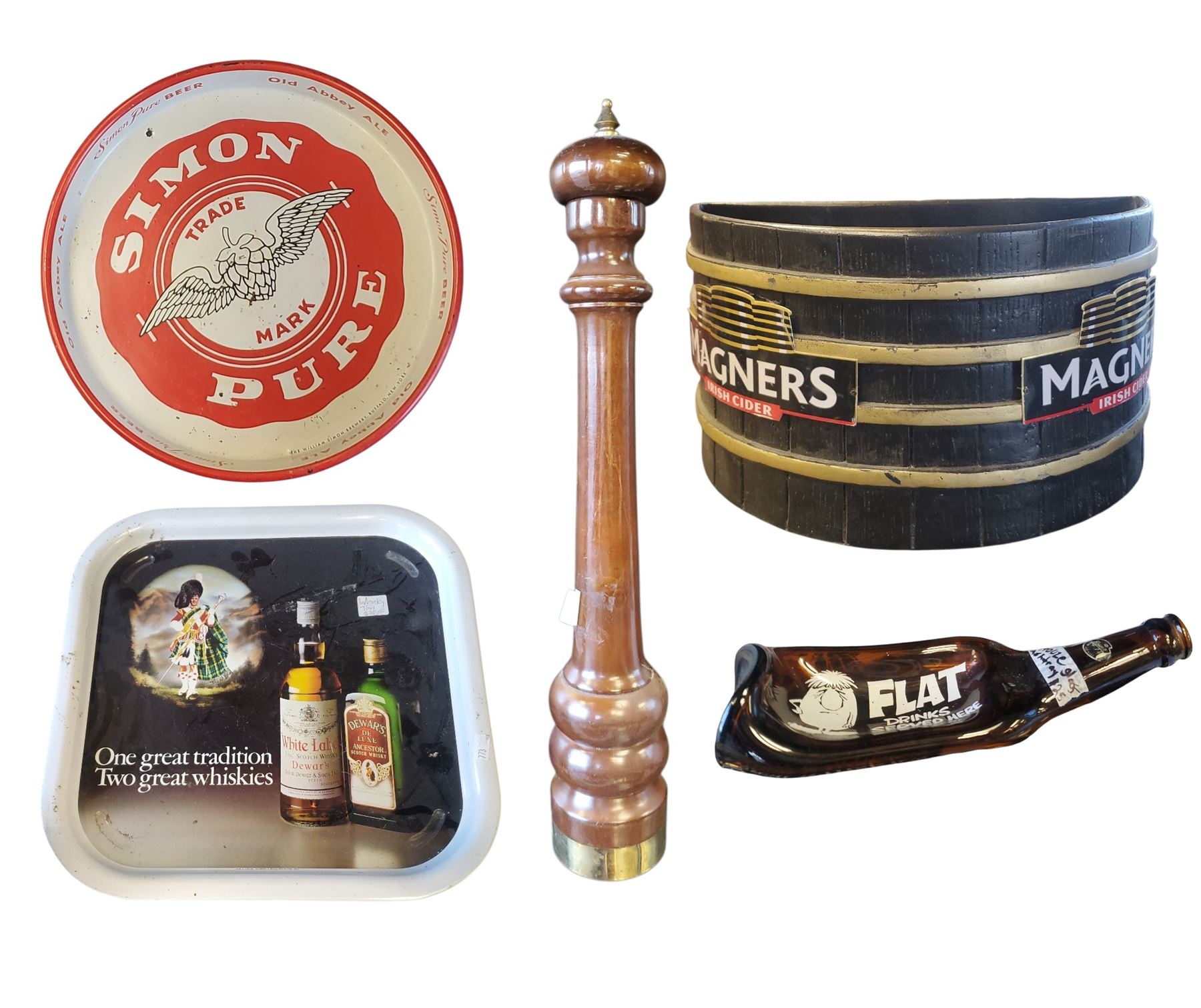 Collection of barware includes a Magners Irish Cider branded glass, an Old Abbey Ale branded glass, a Dewars branded glass, and a 21-Inch pepper mill. All items are as pictured.