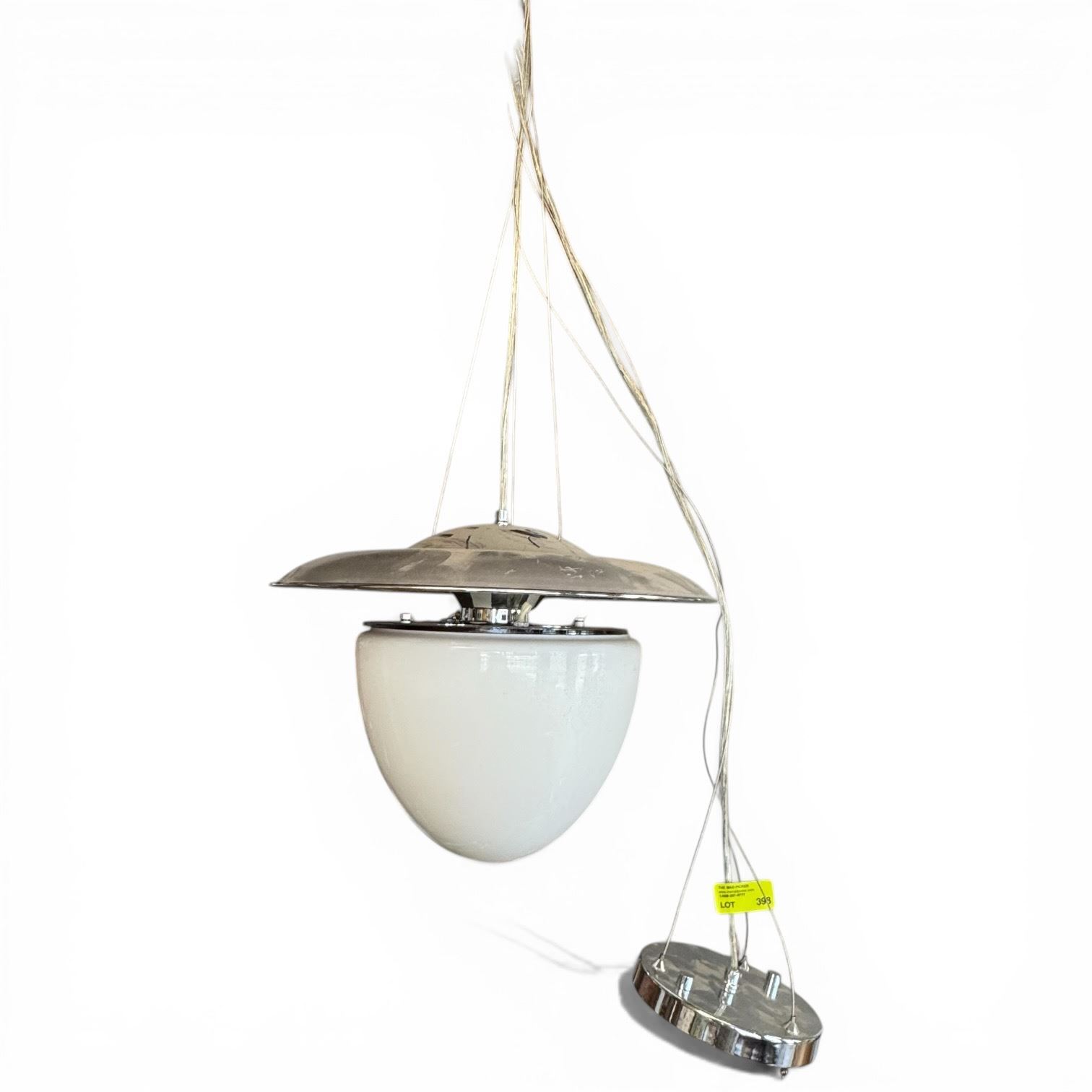 Bauhaus Style Chandelier with Metal Reflector and Milk Glass Shade (17" diameter x 13" tall)
