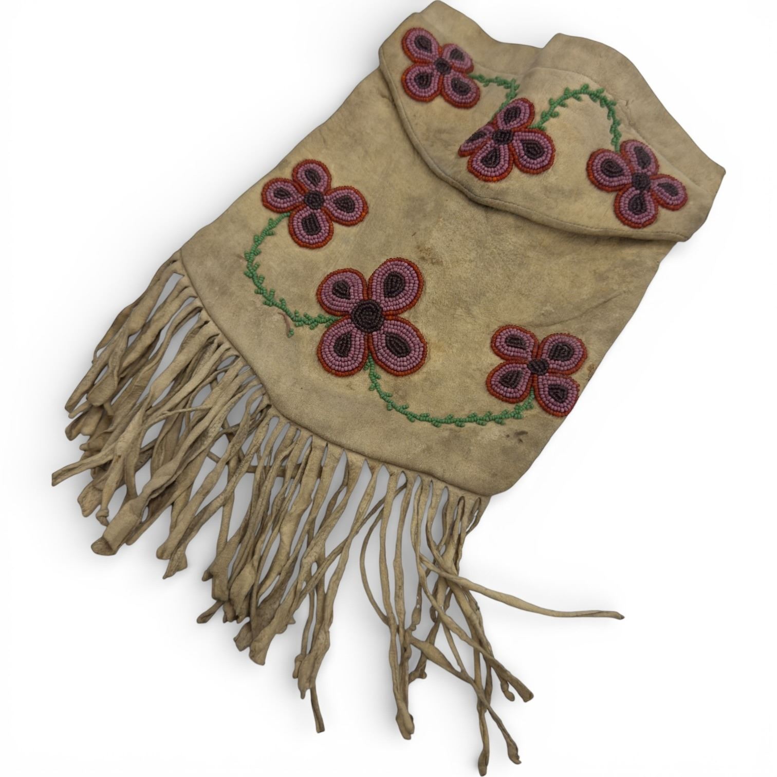 Beaded Cloth Belt Pouch * Possibly Plateau First Nations Design (7" x 9")