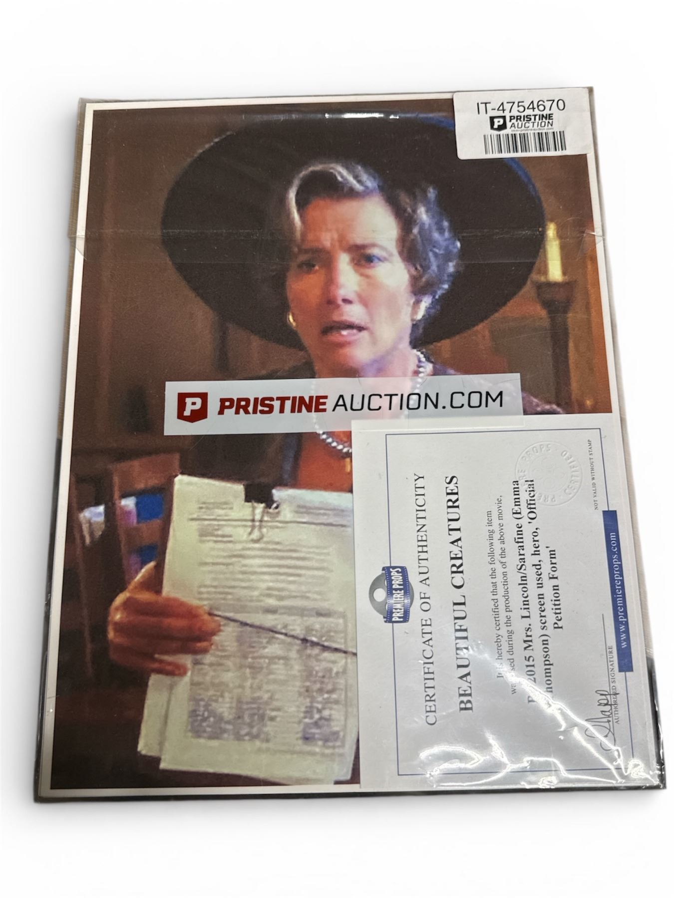 "Beautiful Creatures" Screen Used, Hero, Official Petition Form. Held by Mrs. Lincoln Sarafine (Emma Thompson) w/COA