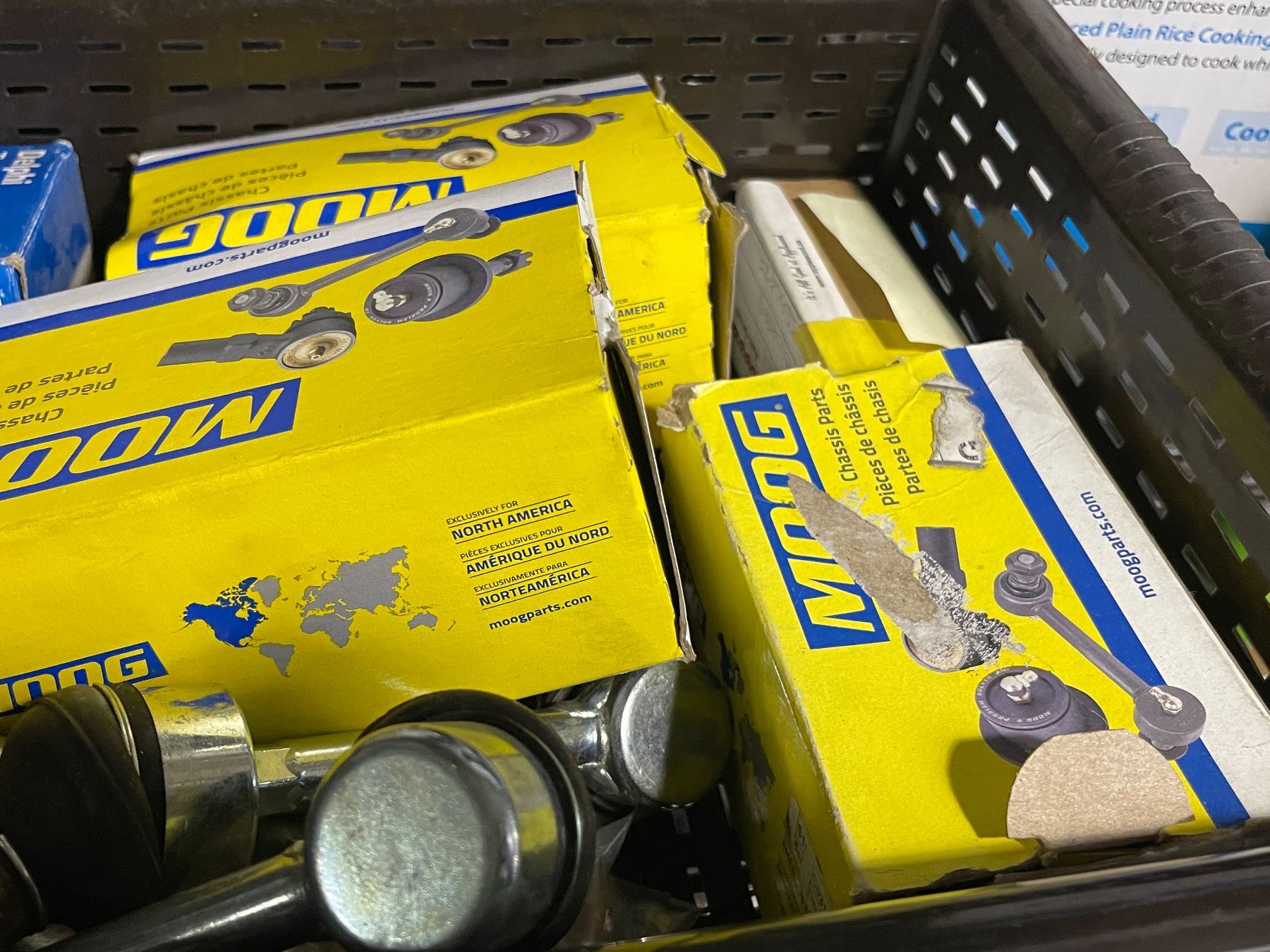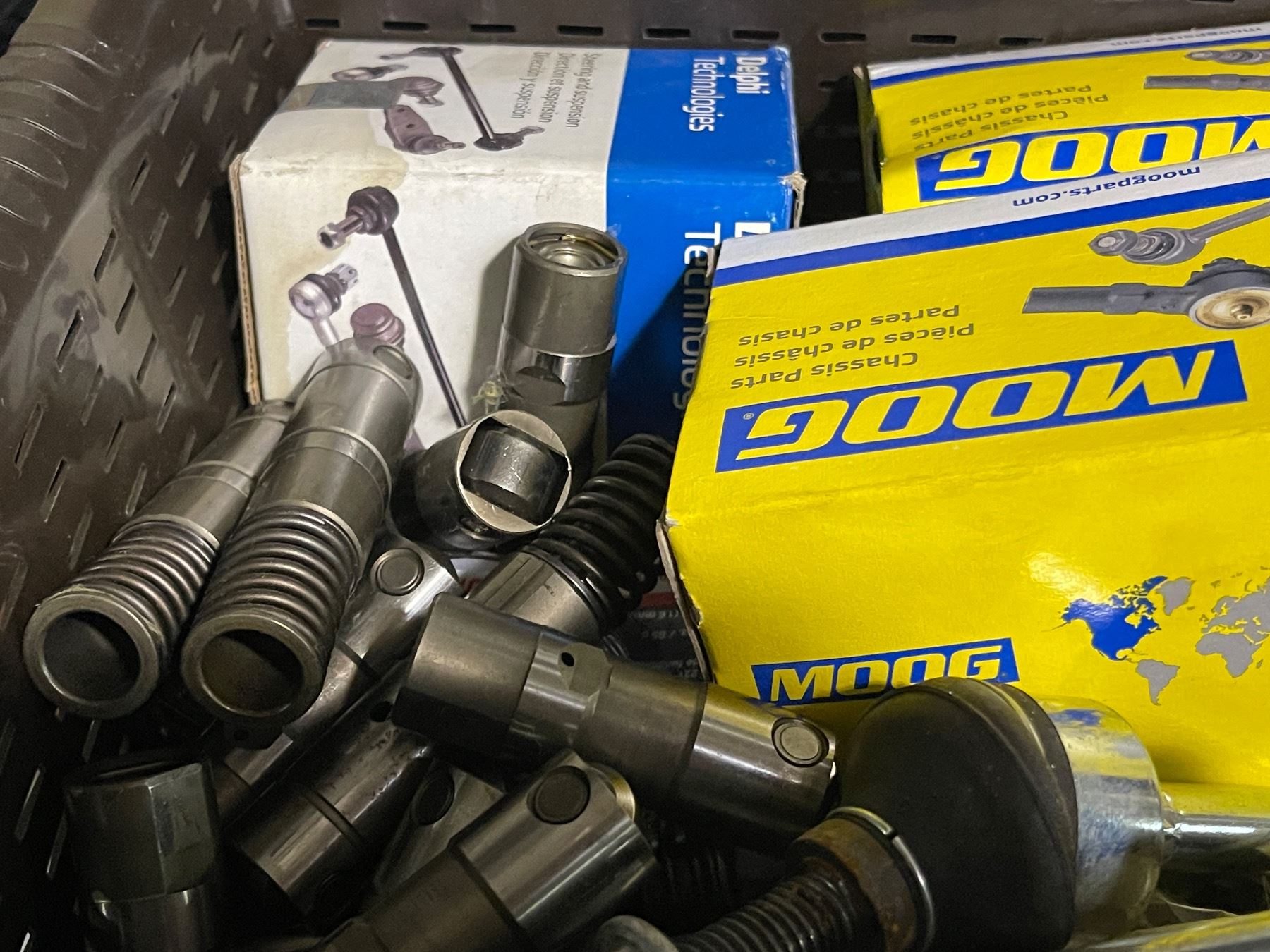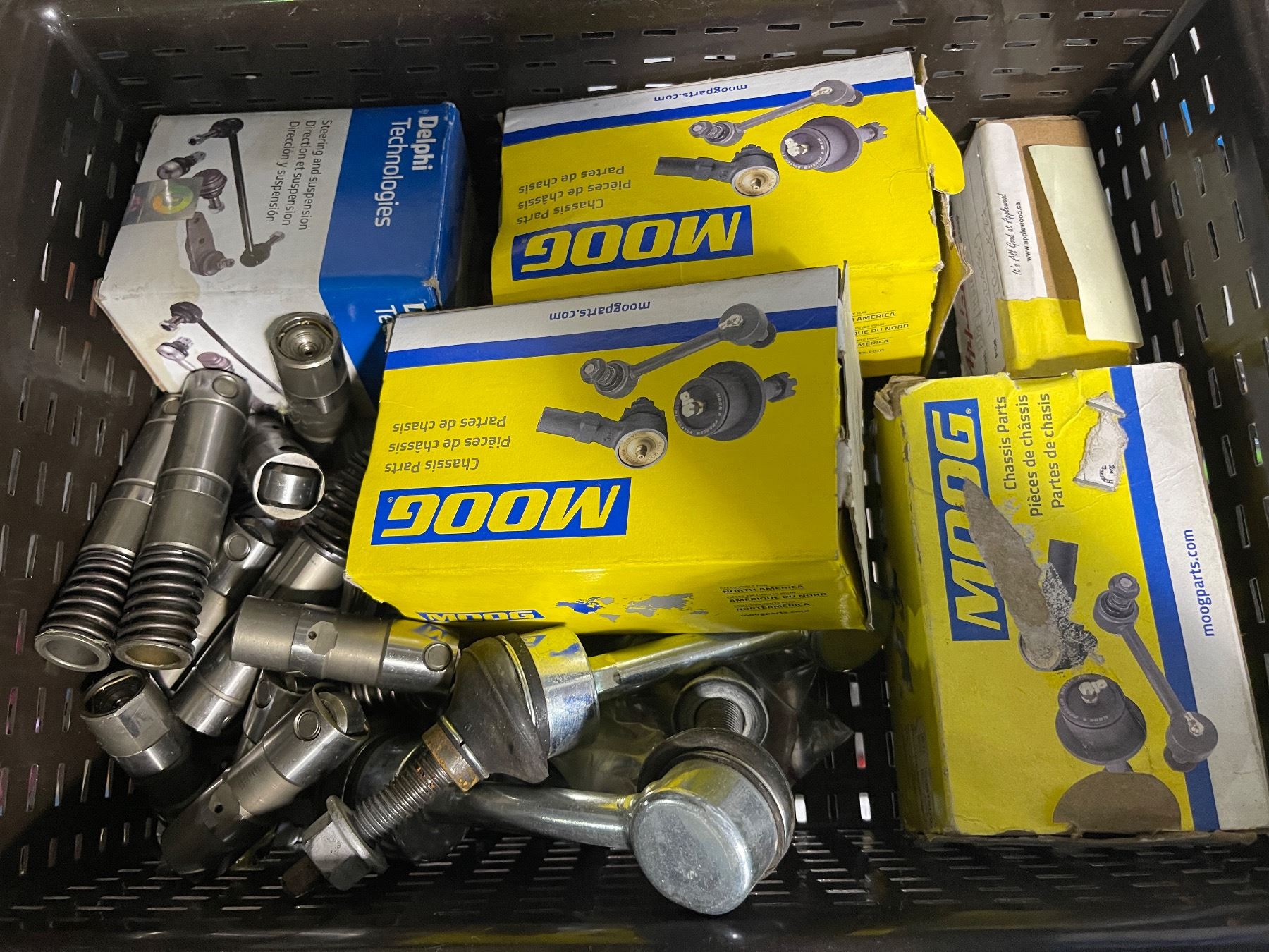 Bin Full of Car Part Components - includes Chassis Parts/Steering/Suspension & More