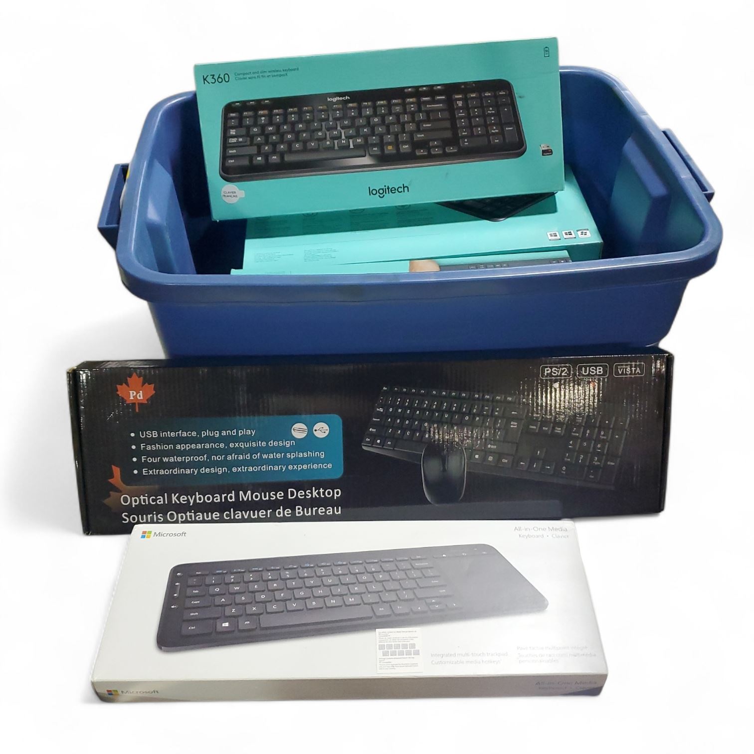 Bin of Various Keyboards - Logitech, Microsoft, Etc.
