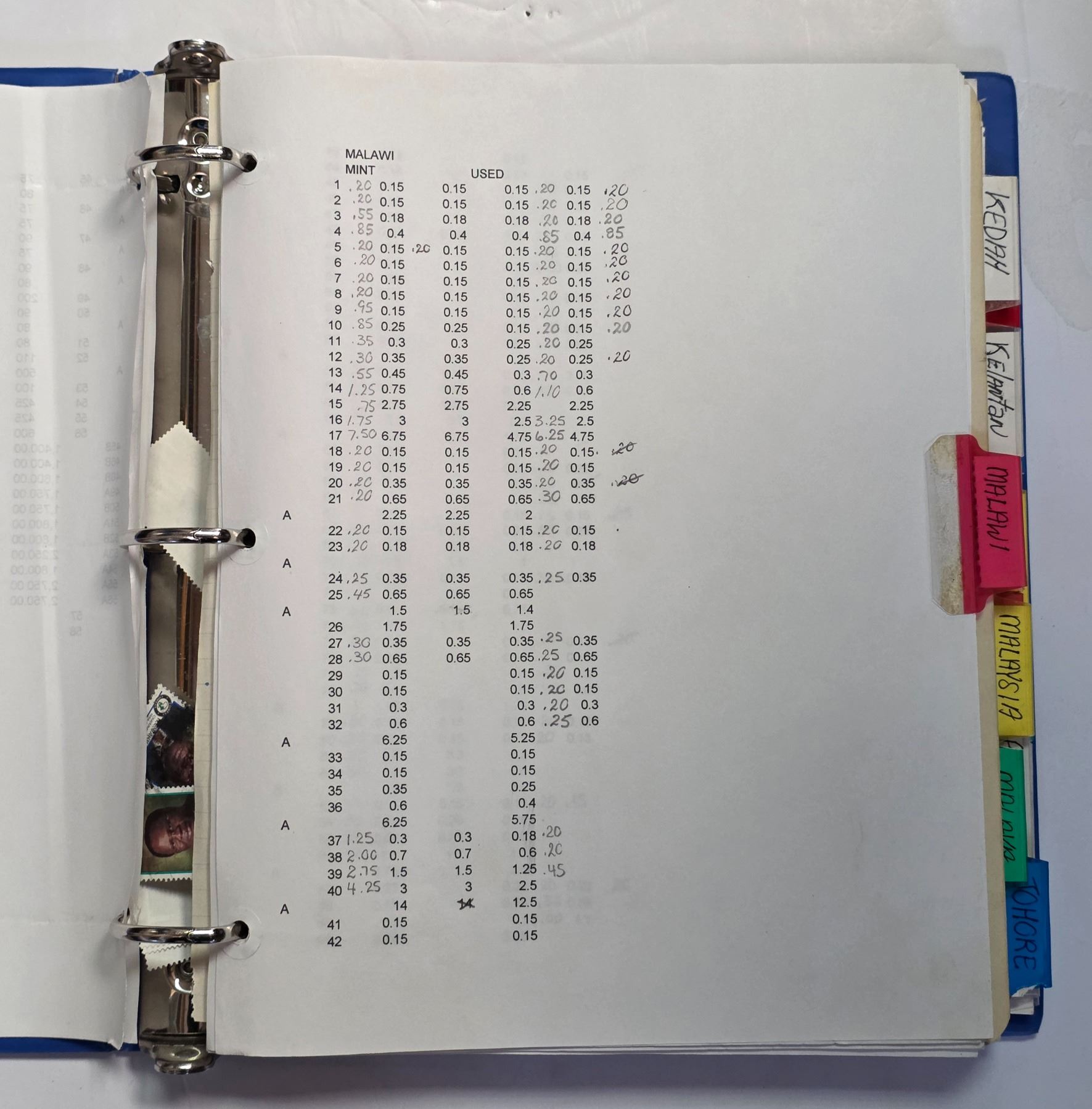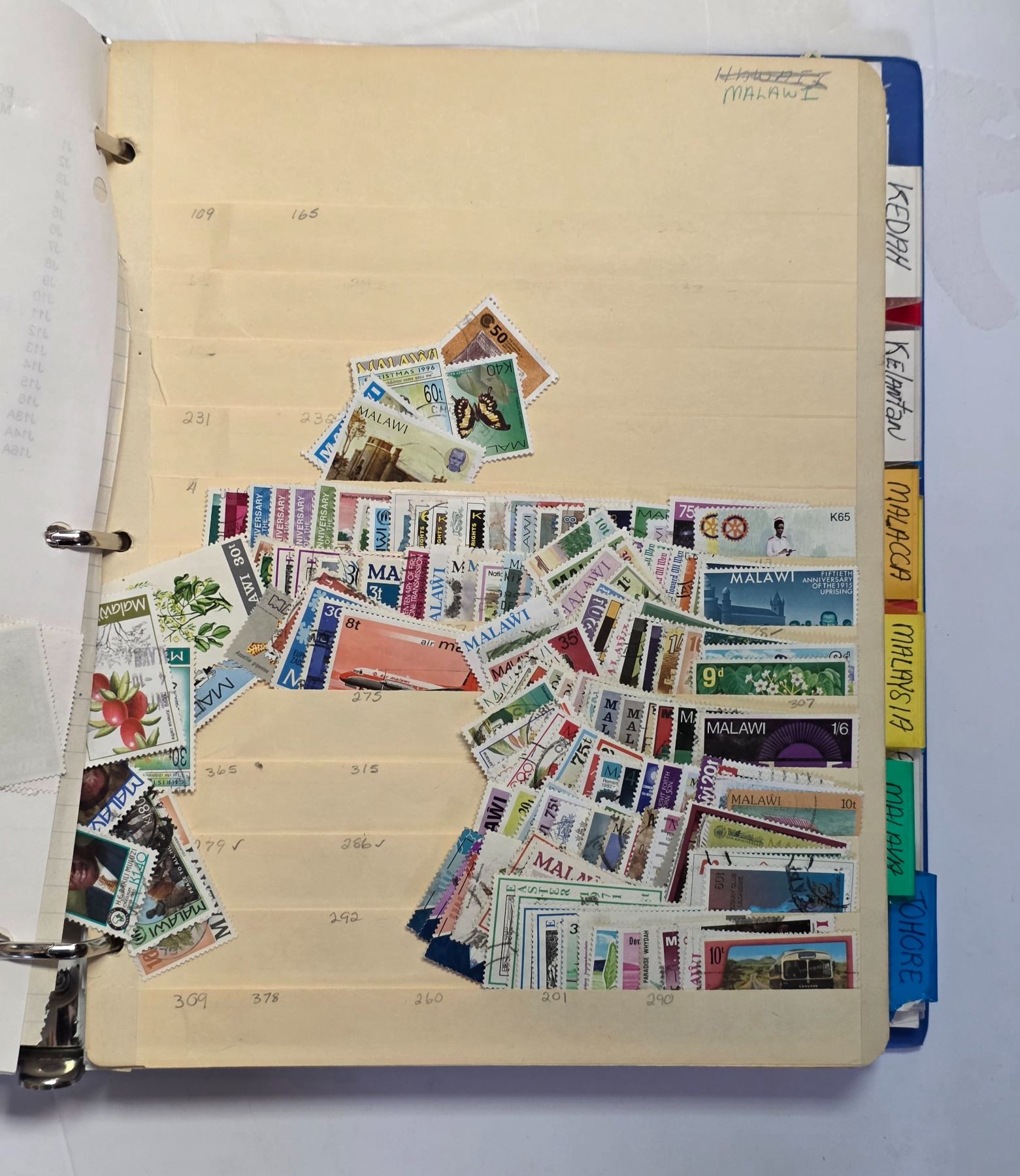 Binder of Malawi and Malaysian Stamps with Index * Used