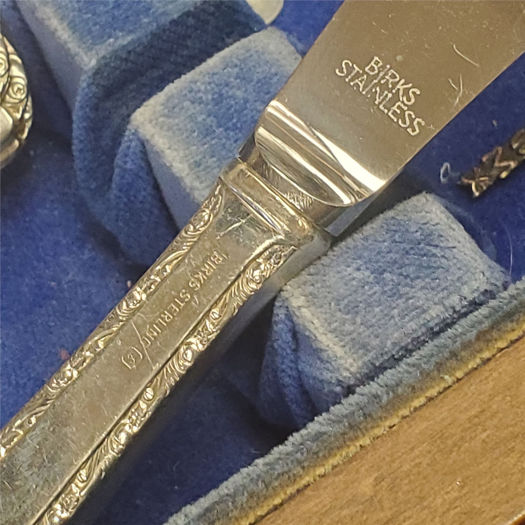 Birks sterling silver cutlery set with a total weight of 3,628.5g (excluding the Knives). Plus the weight the knives weighing 1,809.6g (knives are stainless steel blades and sterling handles). Made from high-quality sterling silver. Item is as pictured. Total weight combines all cutlery pieces including knives and other utensils.