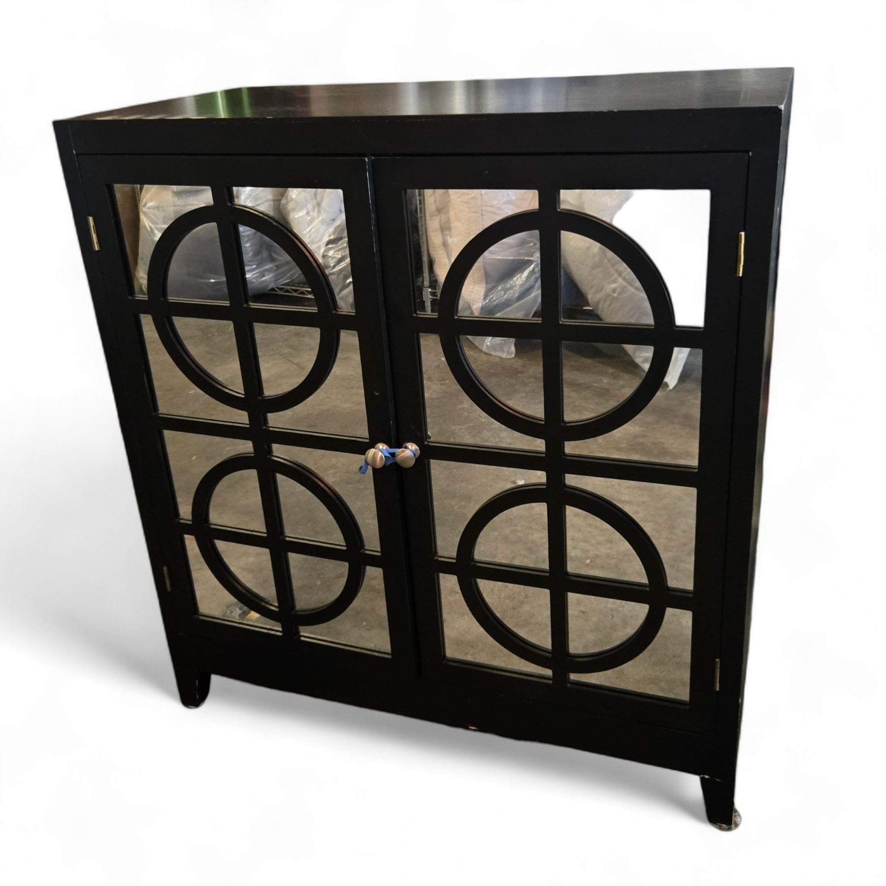 Black 2 Door Cabinet w/ Mirrored Inlays - 30x15x32"