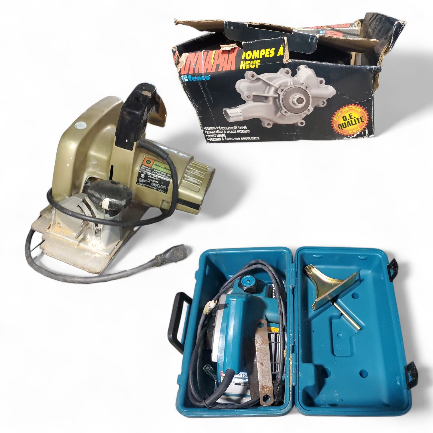 Black & Decker 7-1/4 Circular Saw, Makita N1900 Power Planer, and Dynamax Water Pump