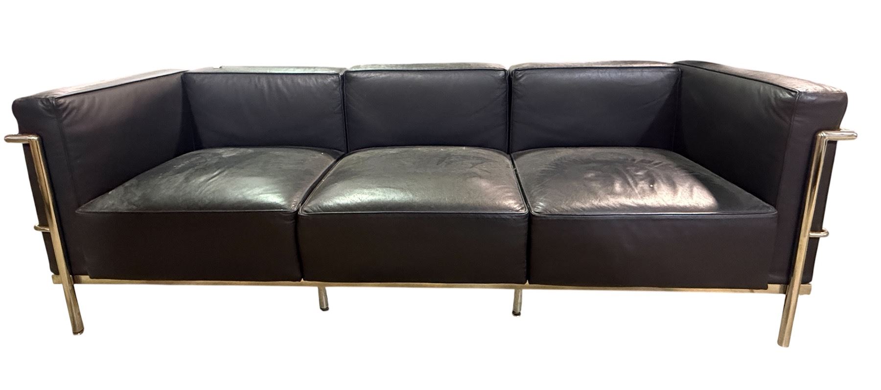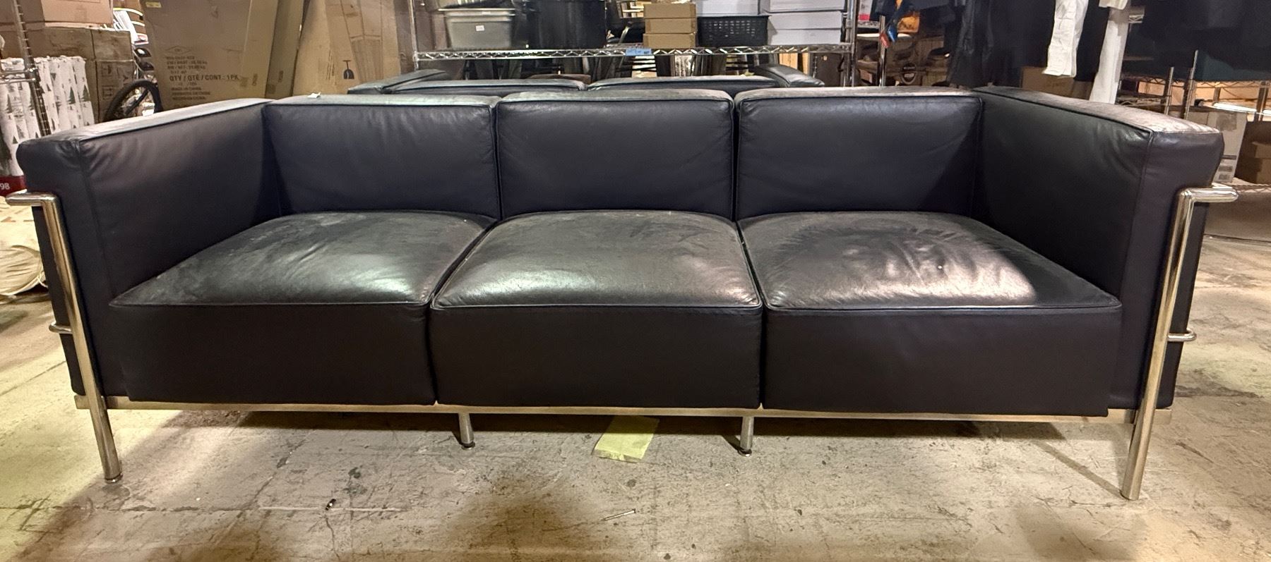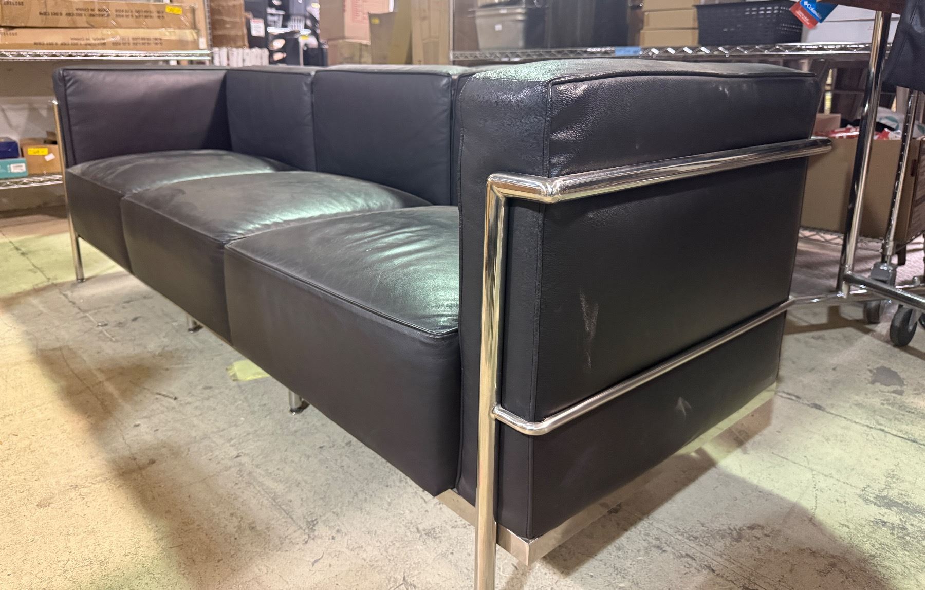 Black Faux-Leather 3-Seater Sofa, H27" x W80" x D25"