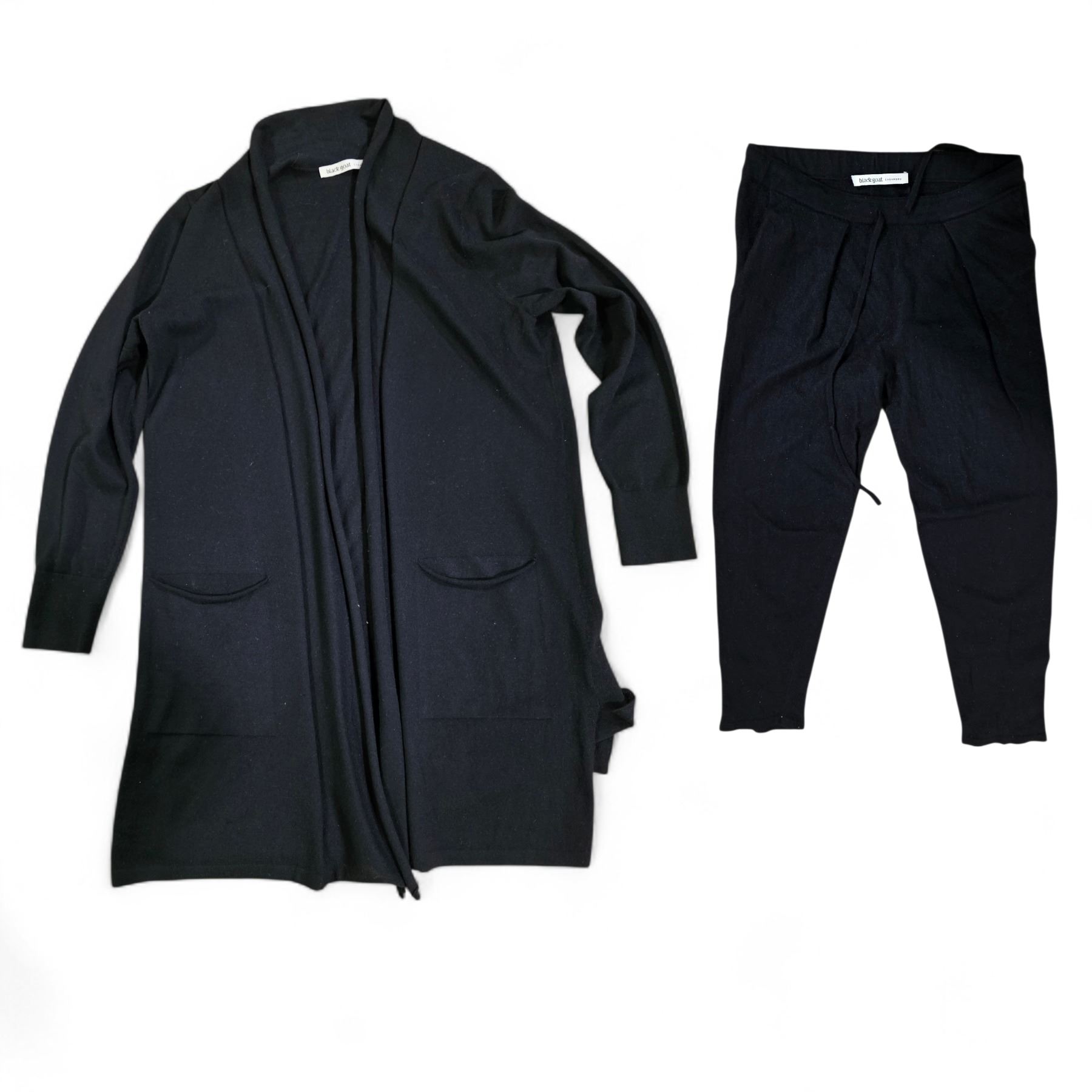 Black Goat Cashmere Black Loungewear Set – Long Cardigan & Jogger Pants (Size M)