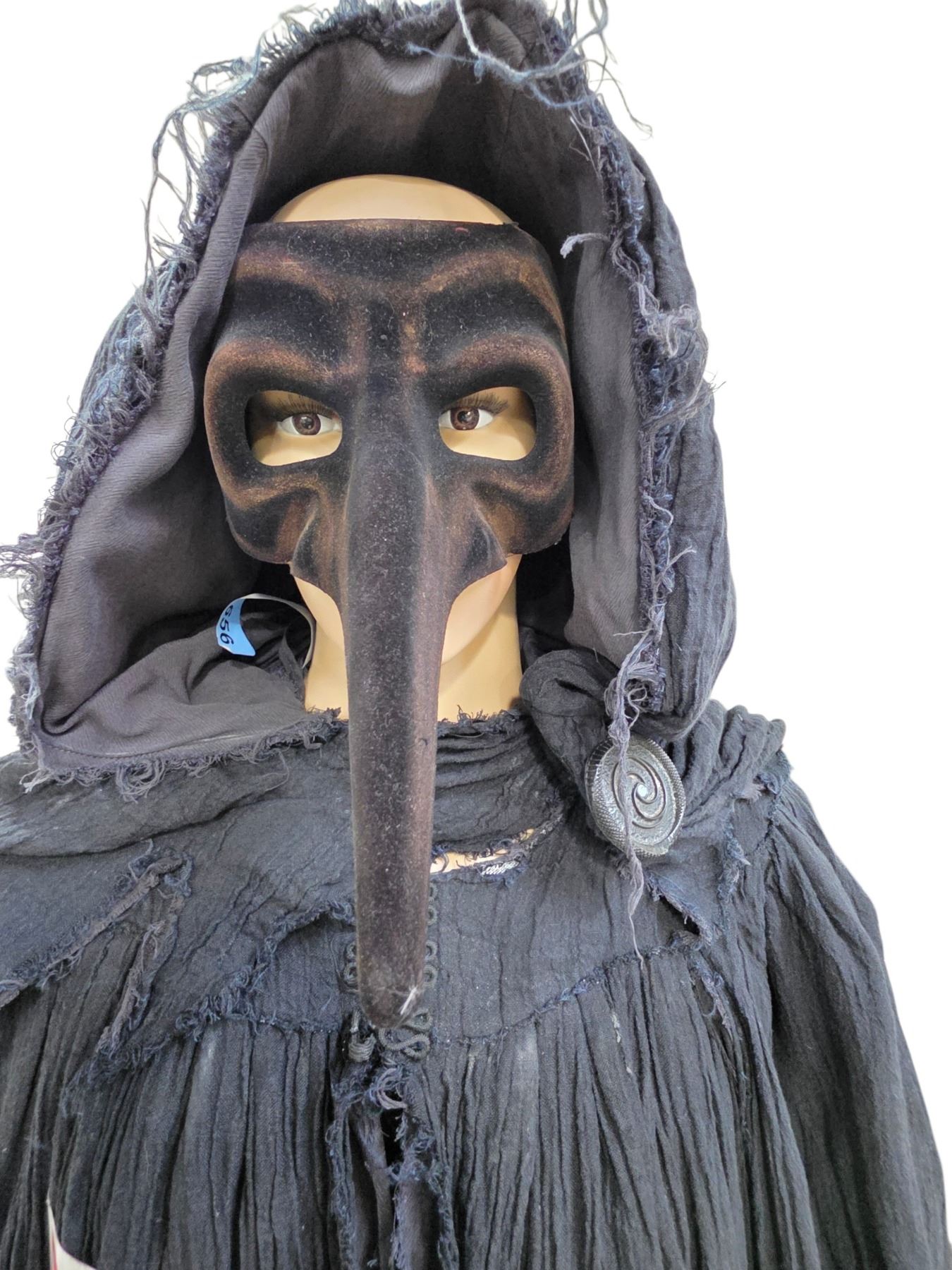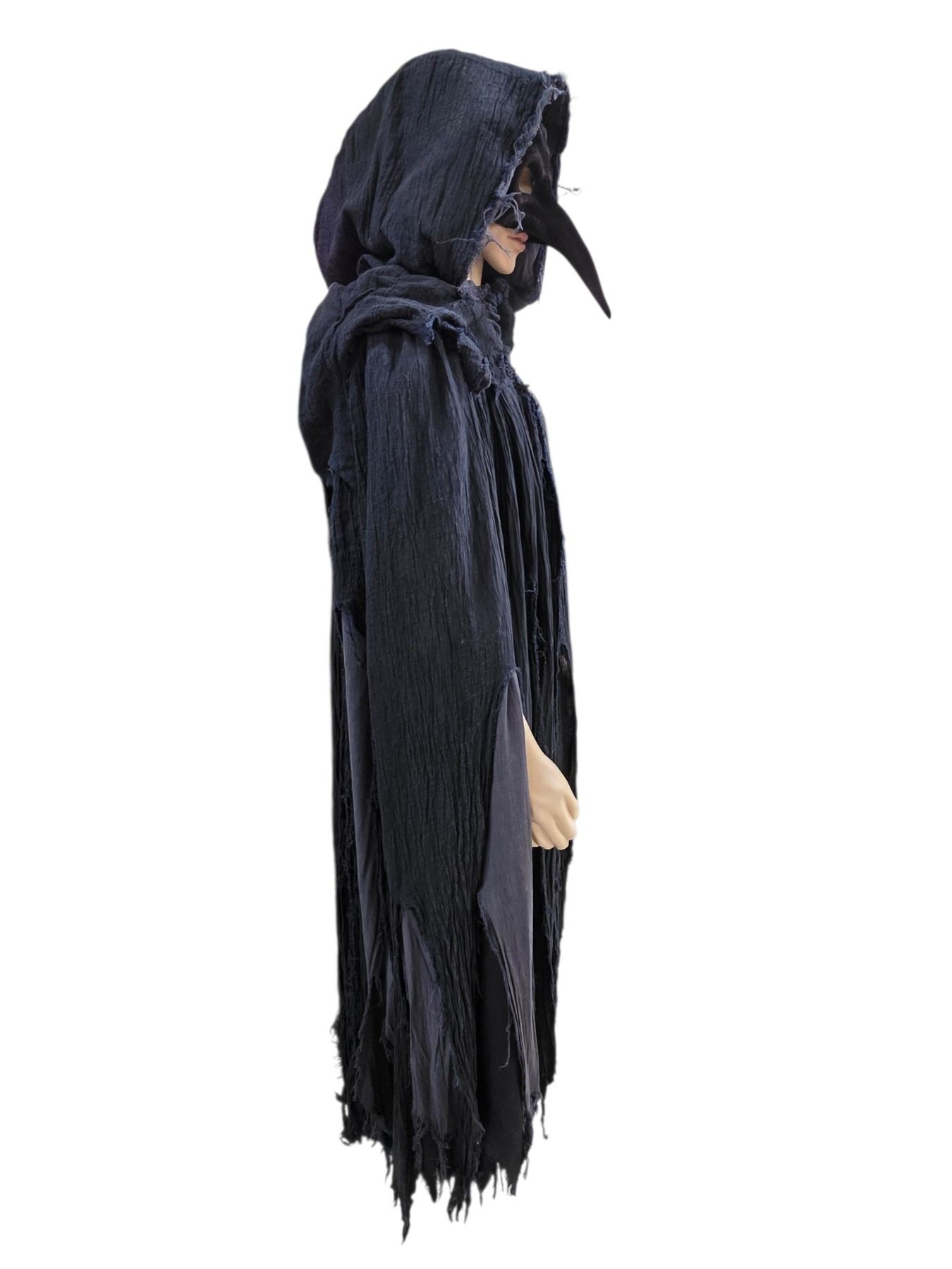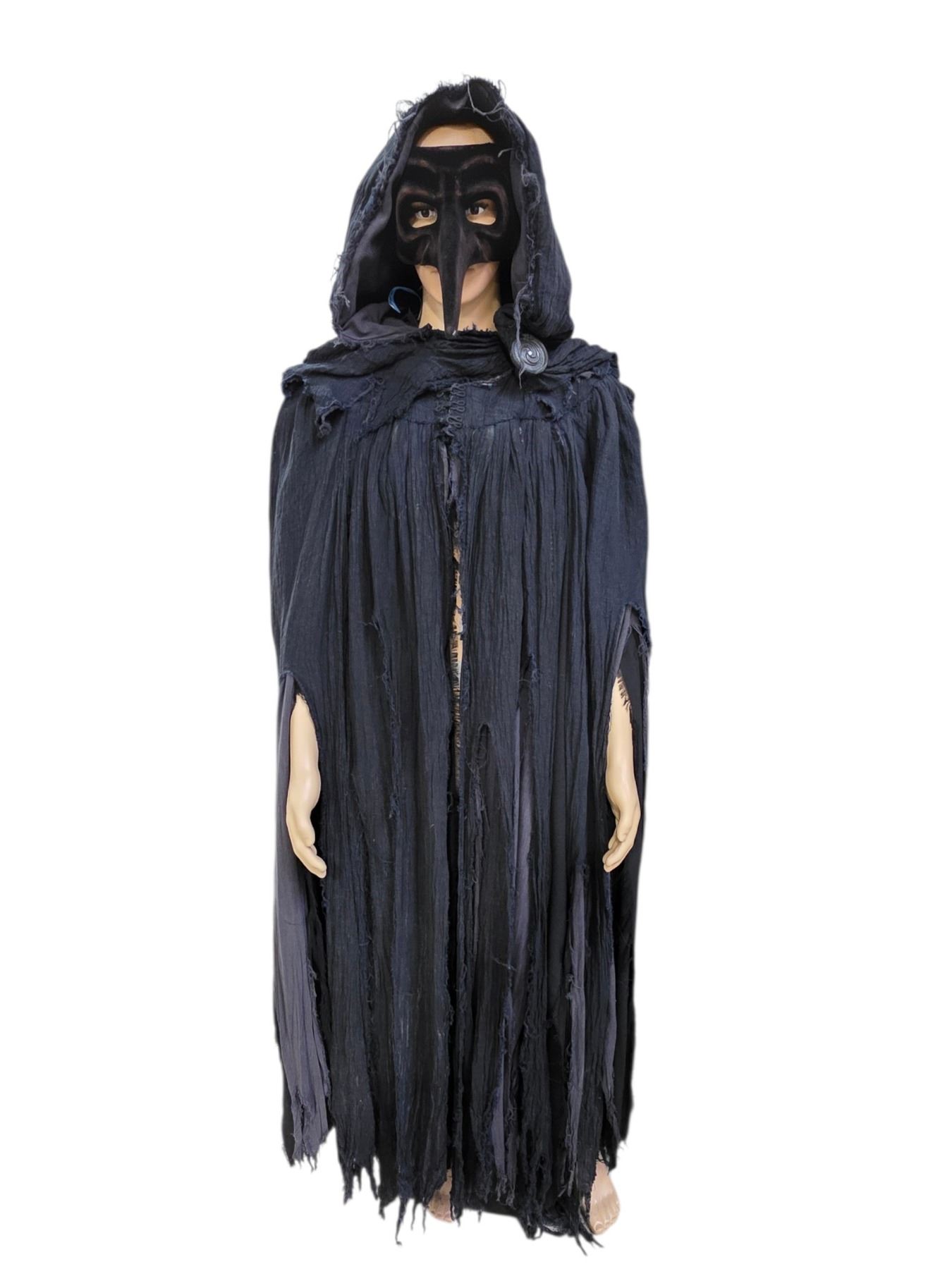 Black Hooded Tattered Costume Robe - Medieval/Plague Doctor Style Cloak
