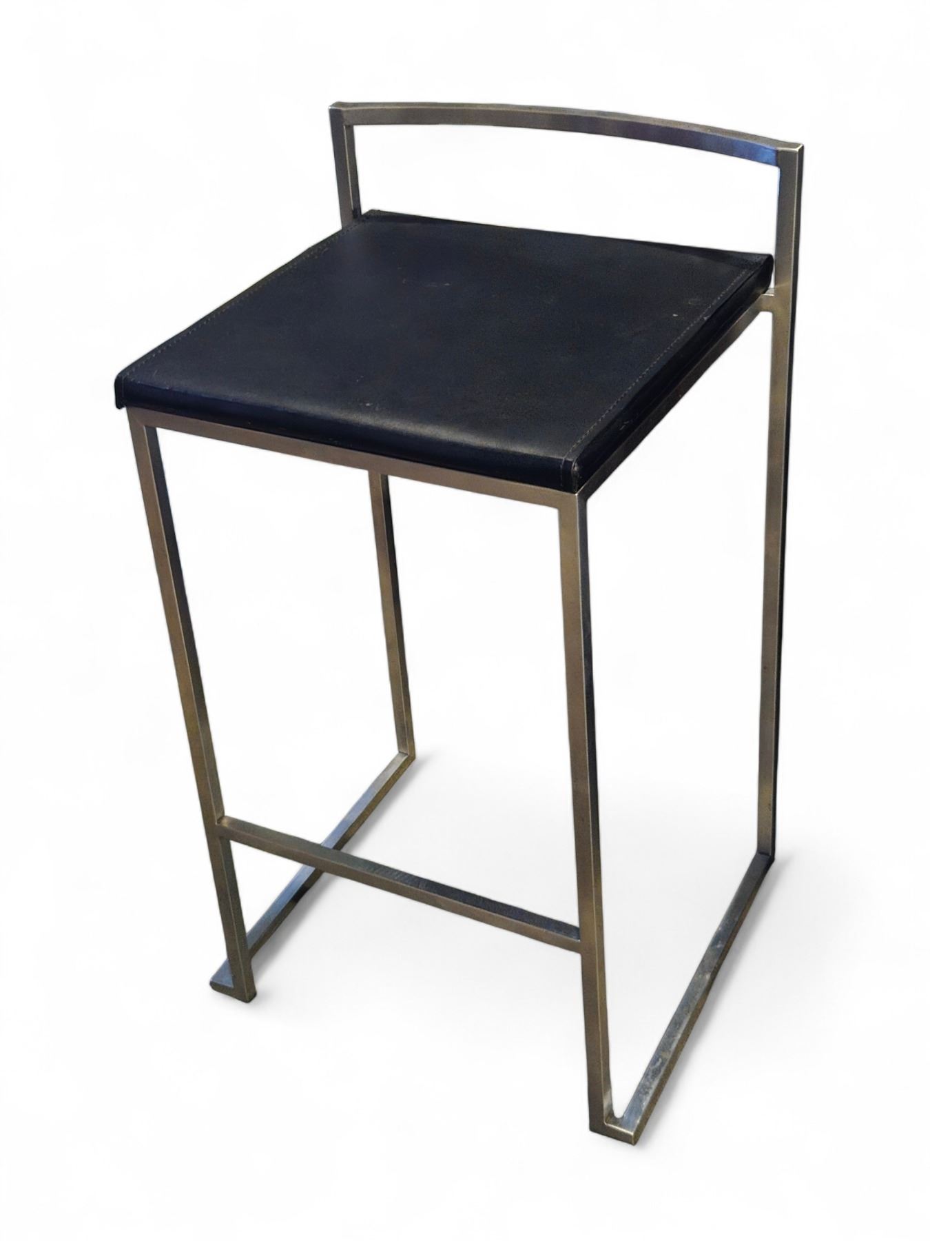Black Leather Counter Height Stool w/ Metal Legs