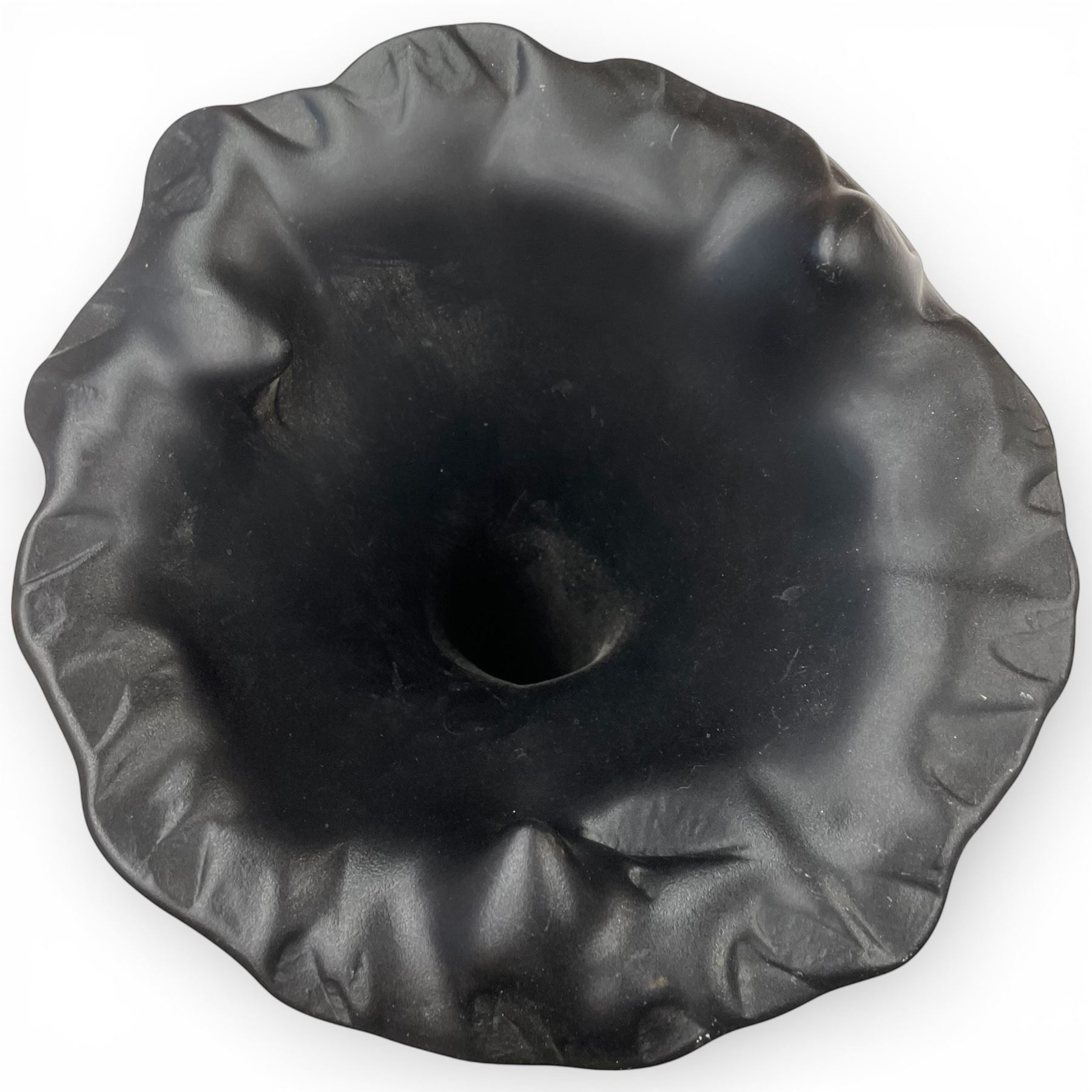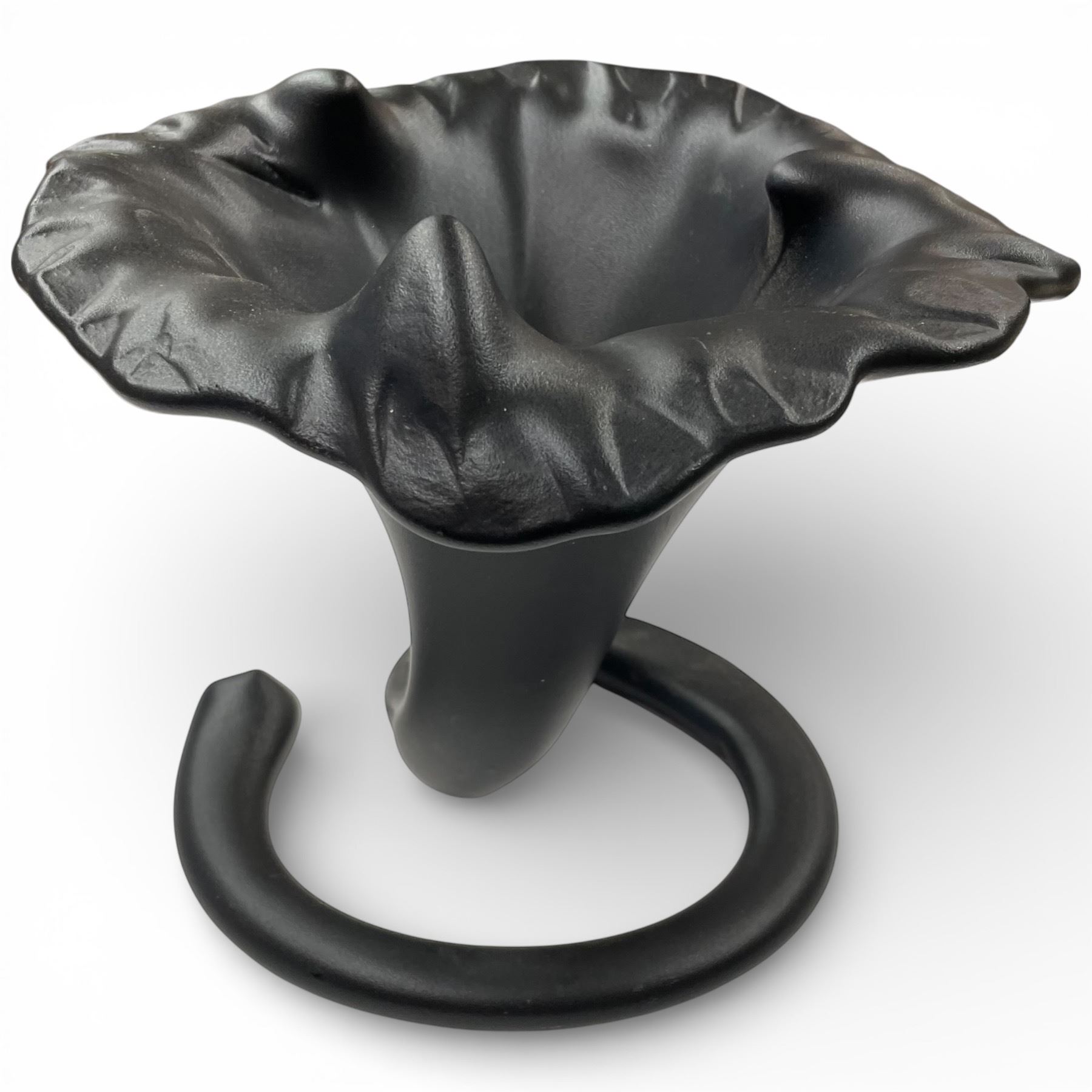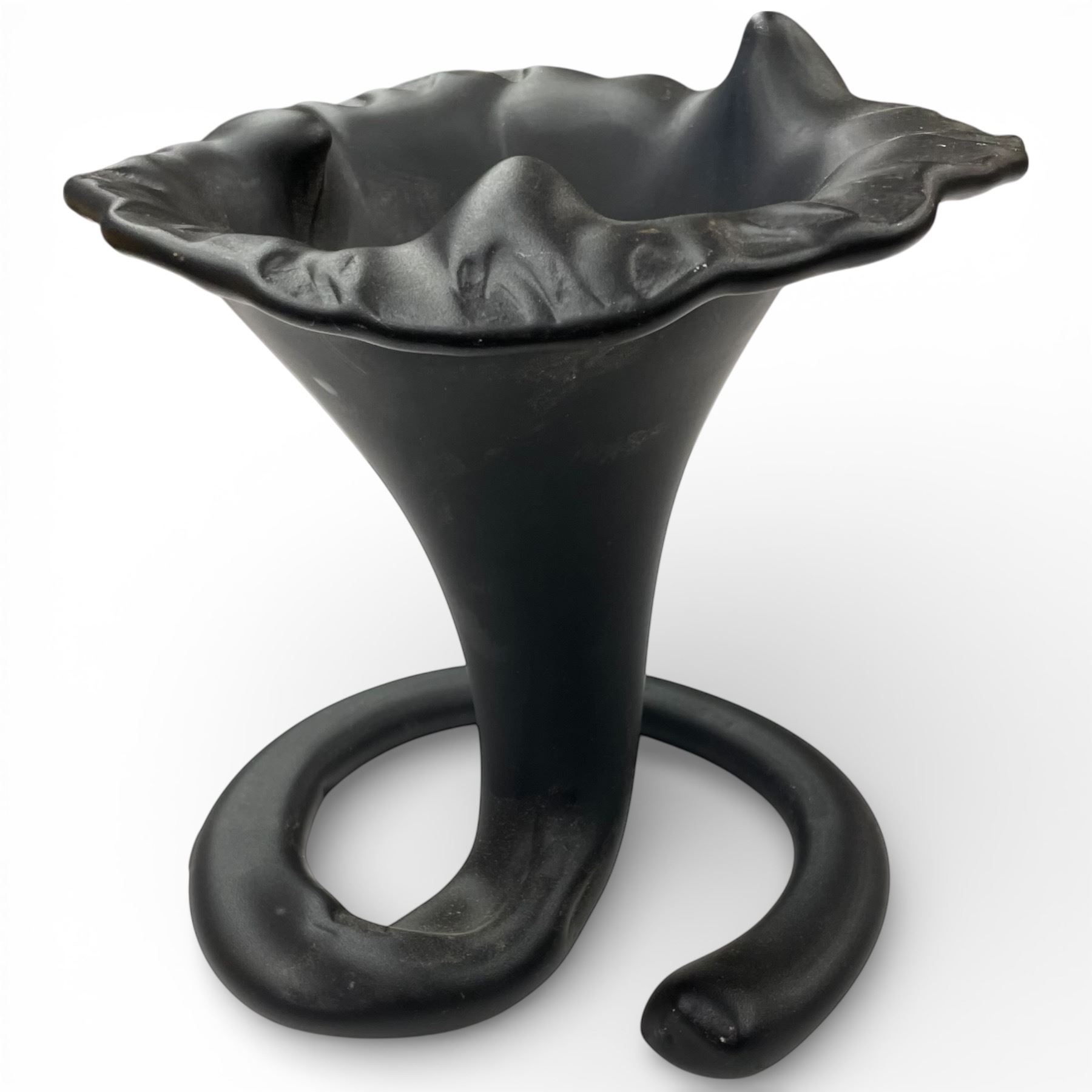 Black Matte Glazed Ceramic Trumper Lily Vase - 10" tall x 9" diameter base