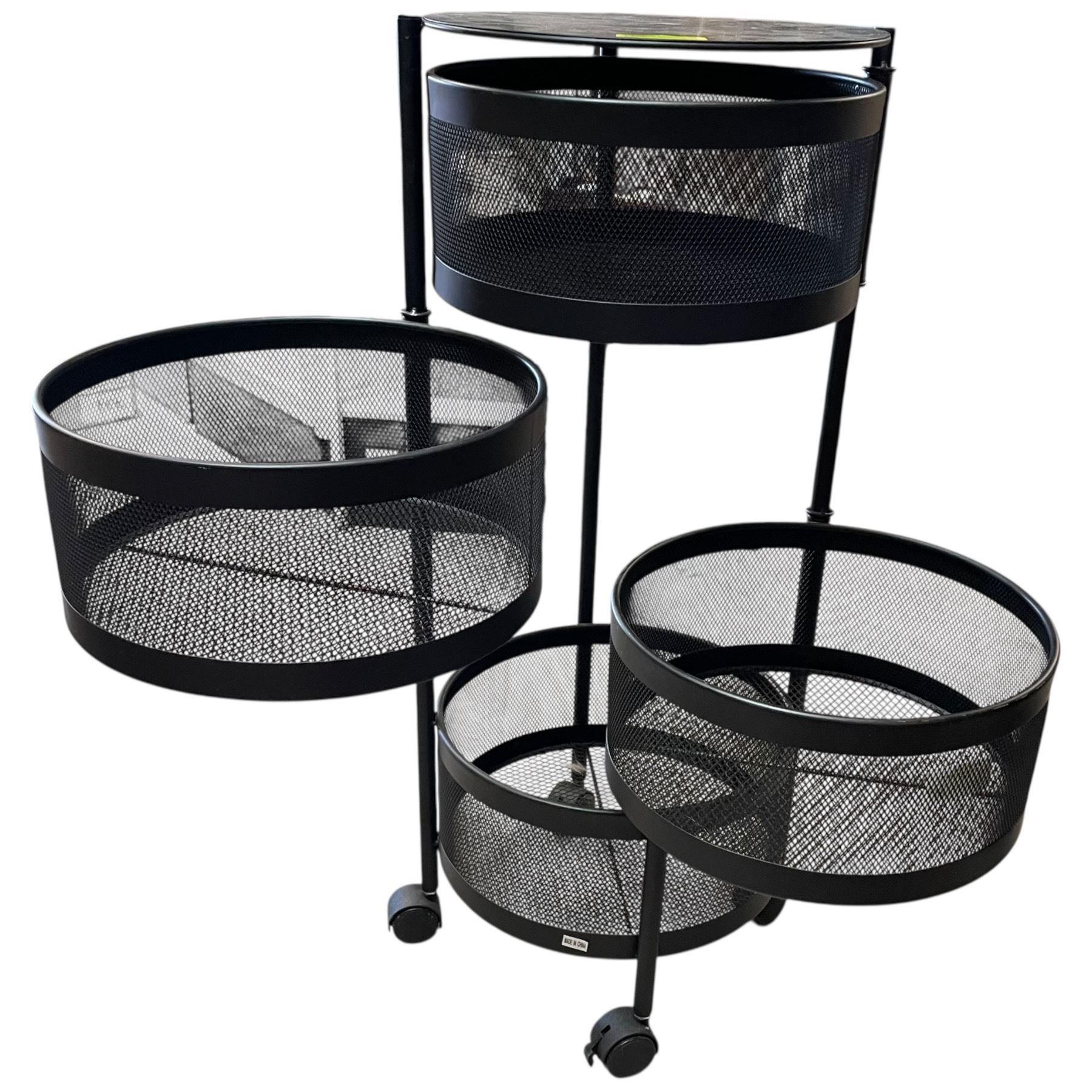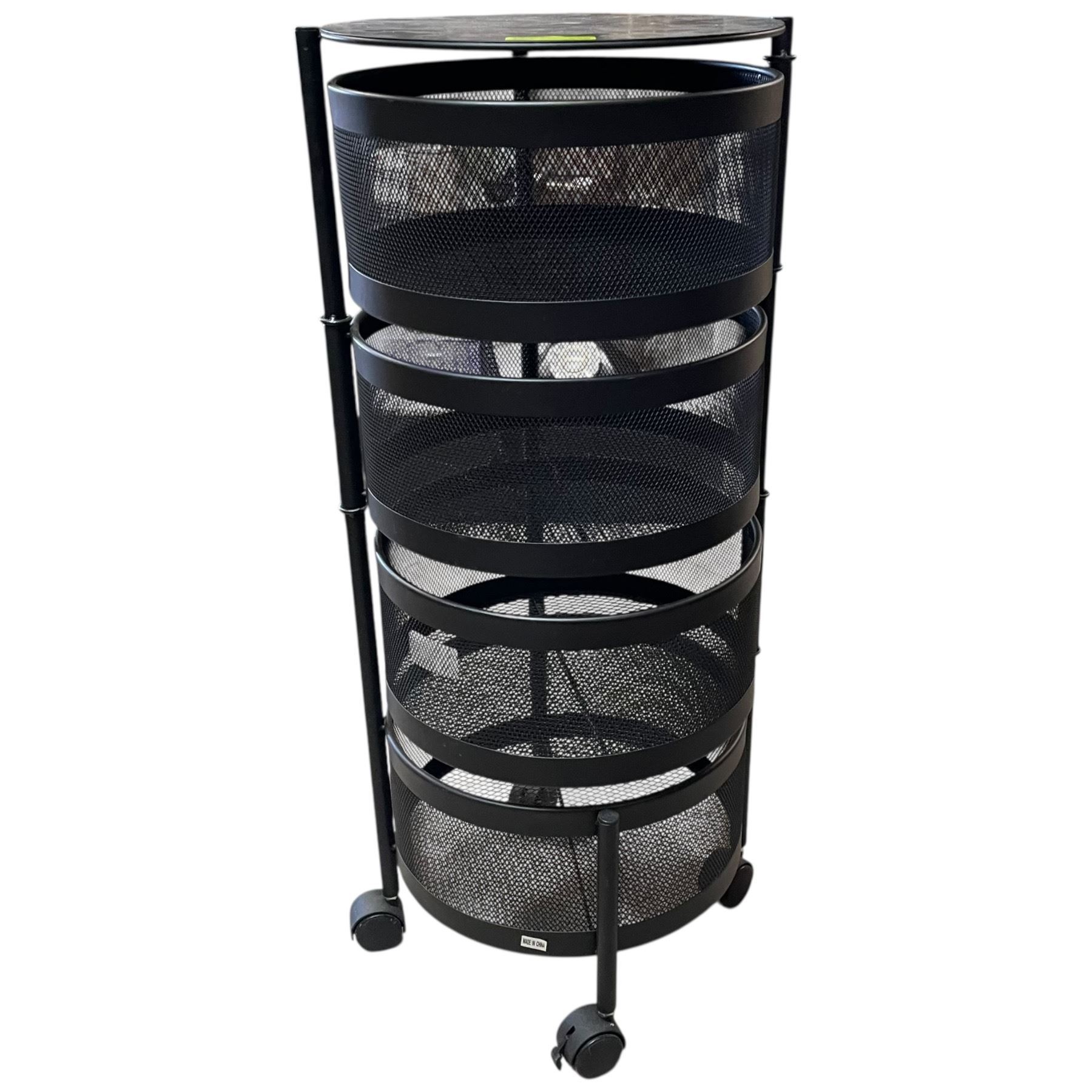 Black Rolling 4-Level Metal Cart - 30" tall x 12" diameter