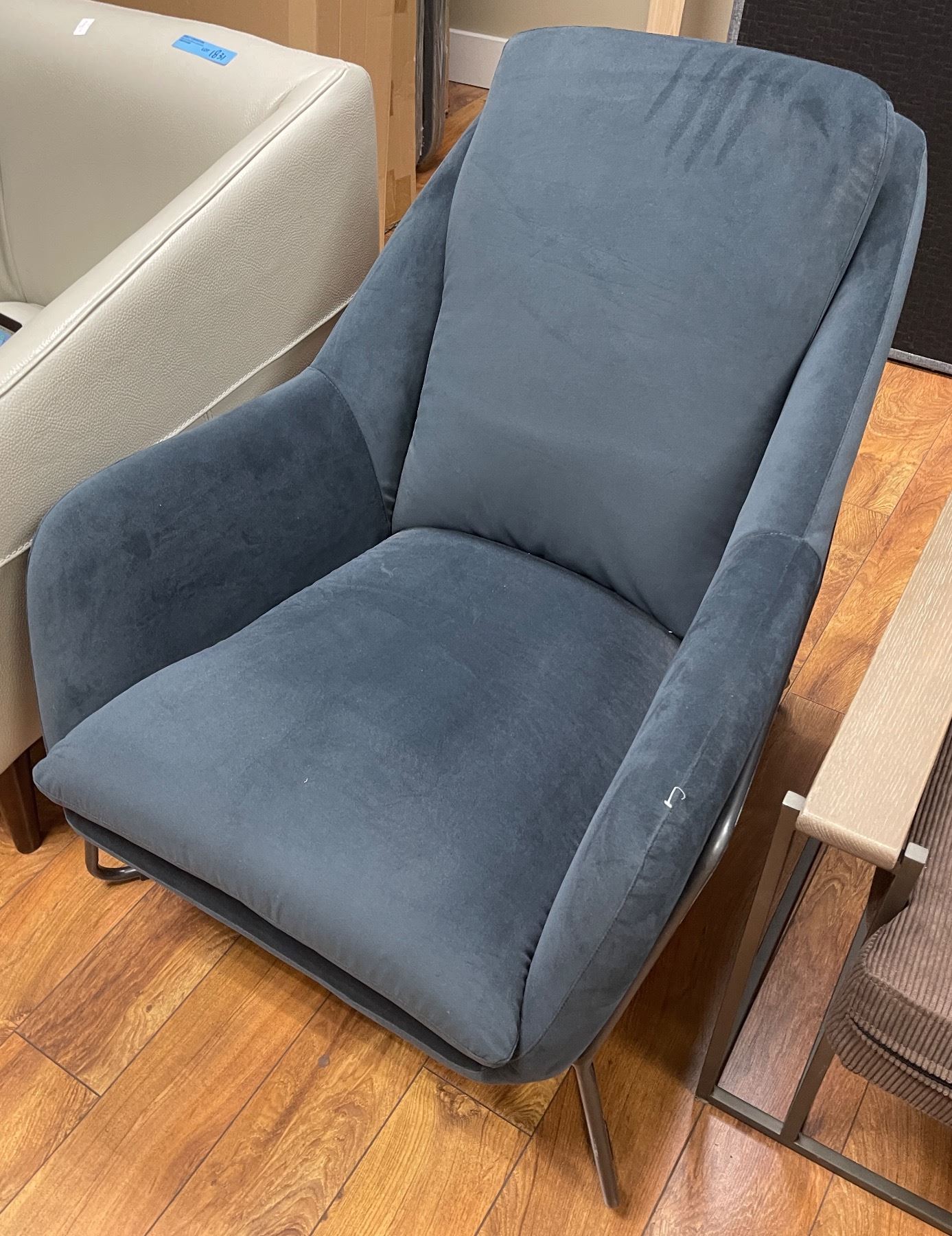 Blue Velvet Accent Chair, H31" x W26" x D33"