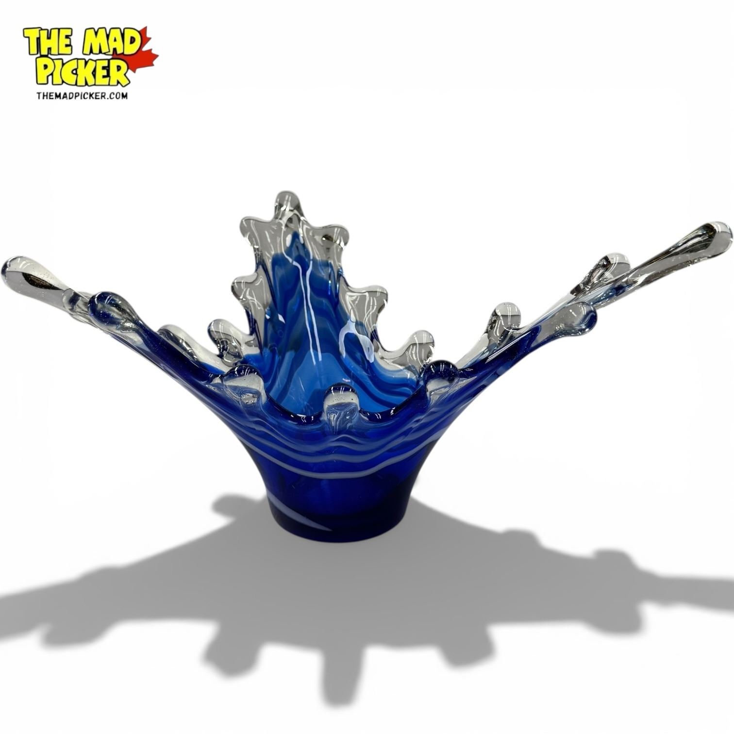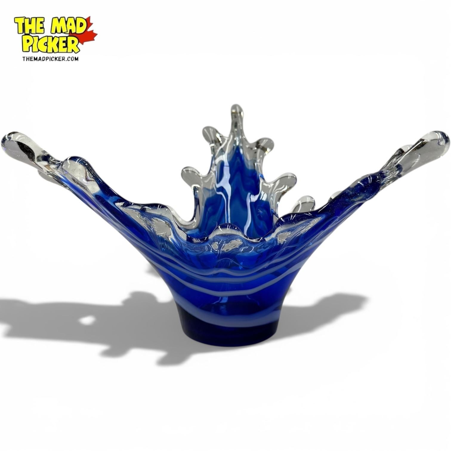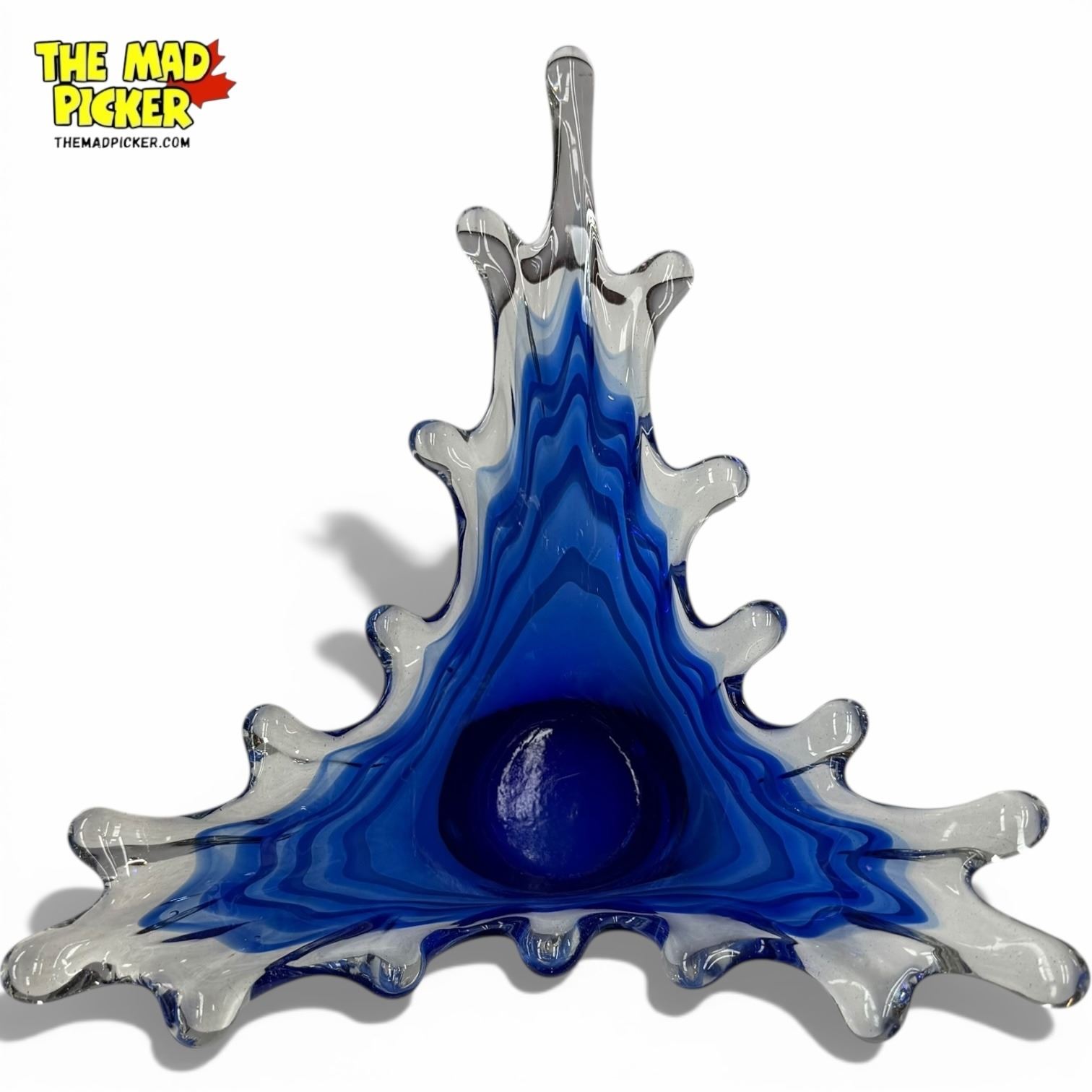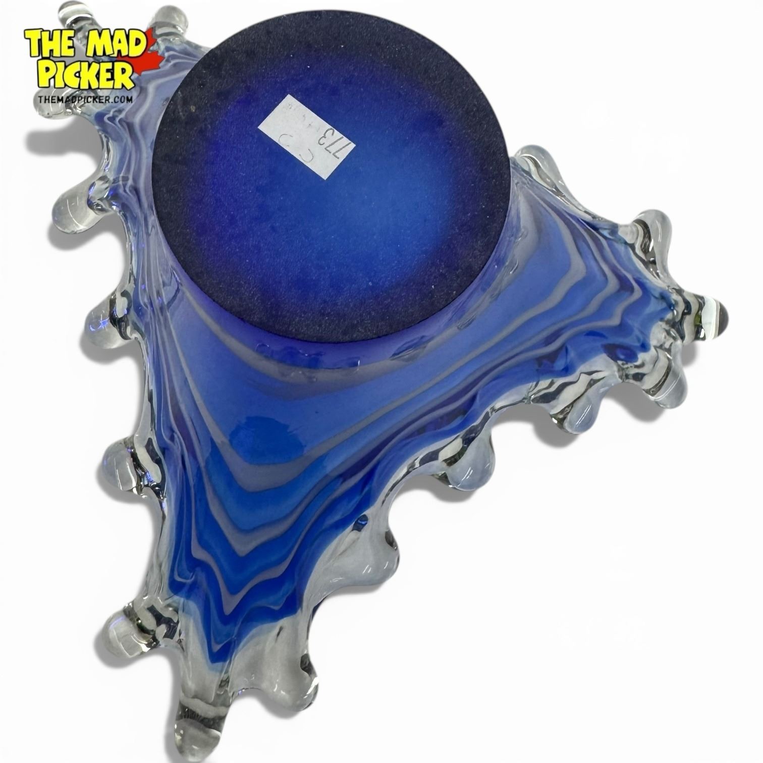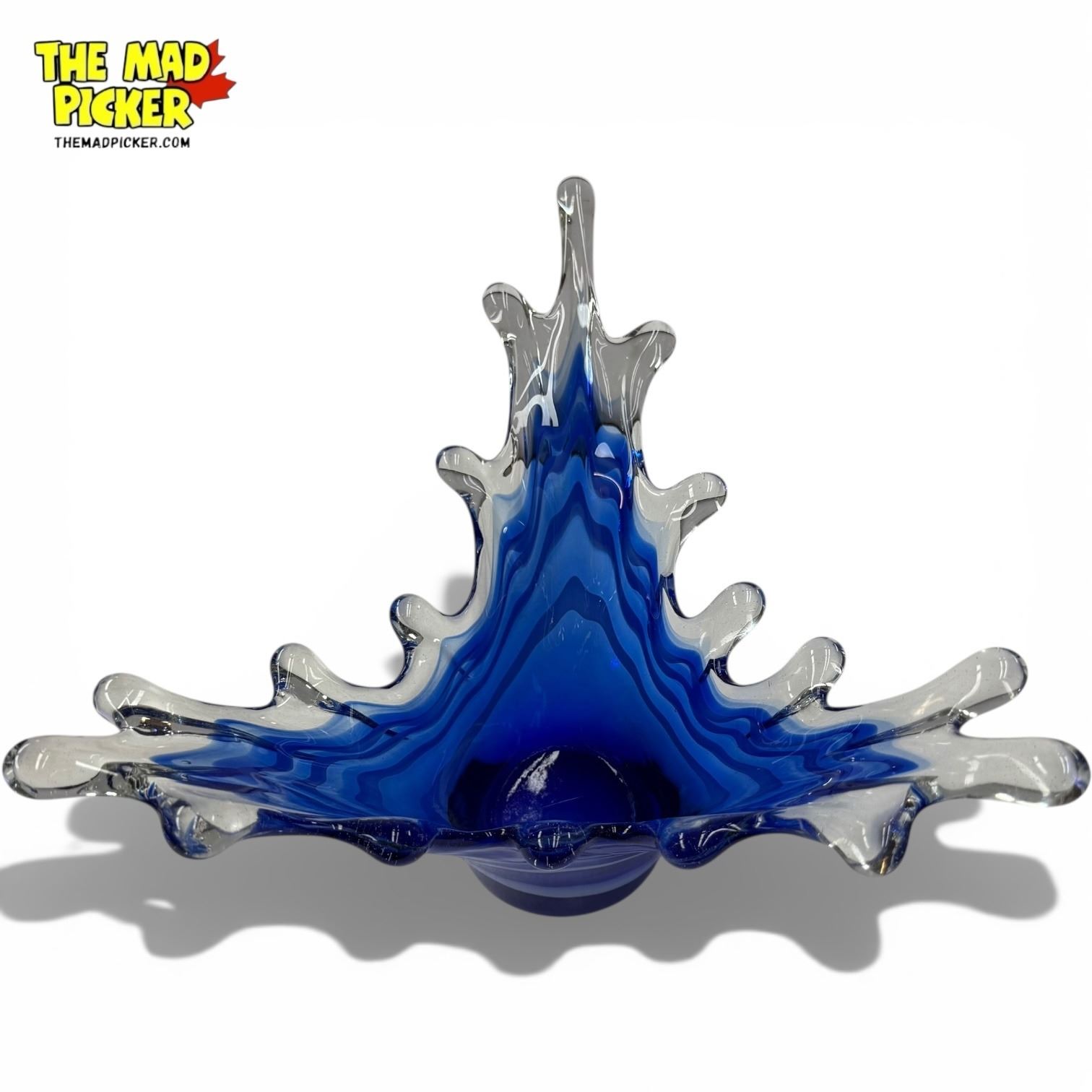 Blue with White Stripe Art Glass Centerpiece Bowl - 7" tall x 13" diameter
