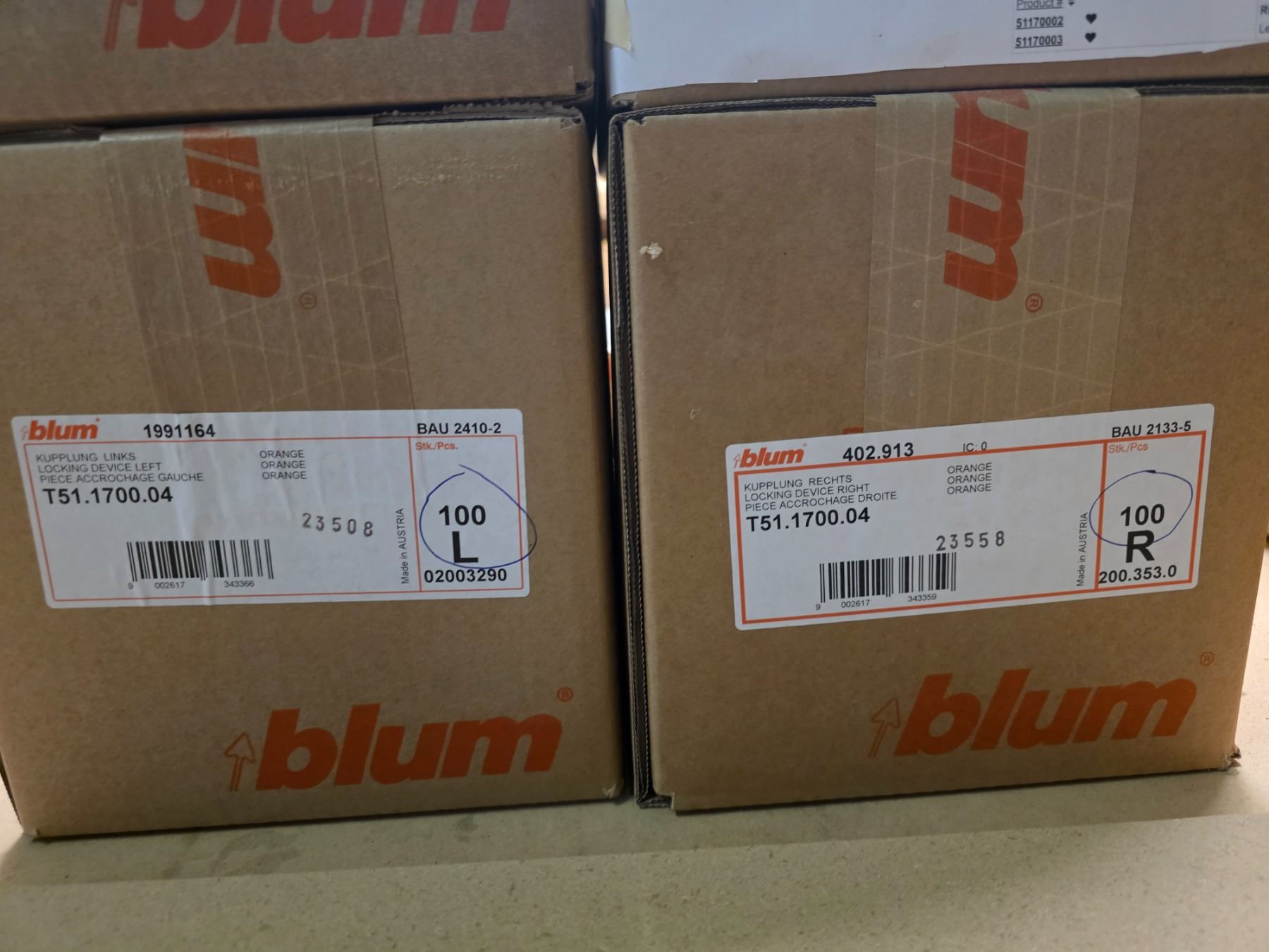 Blum Locks for undermount slides - (x200) Left & (x200) Right
