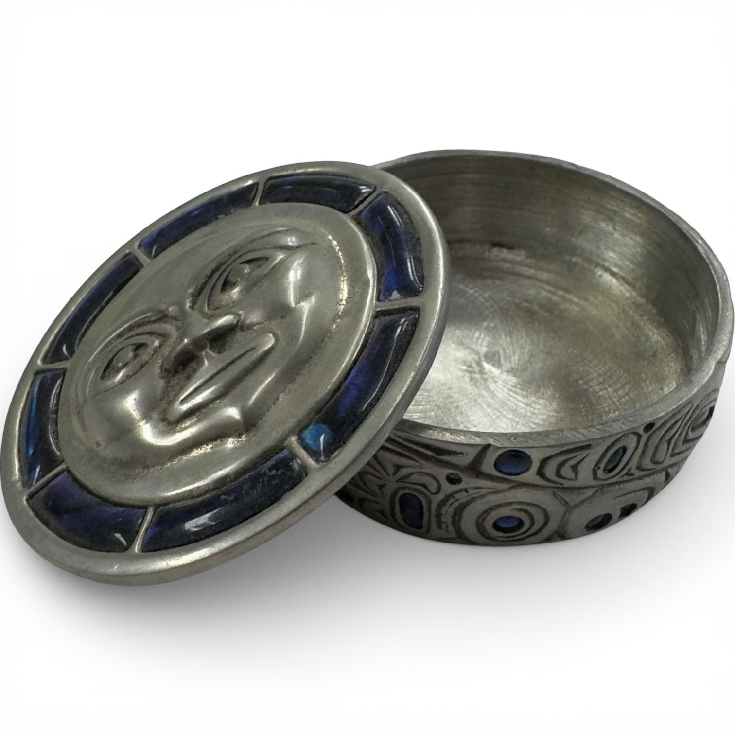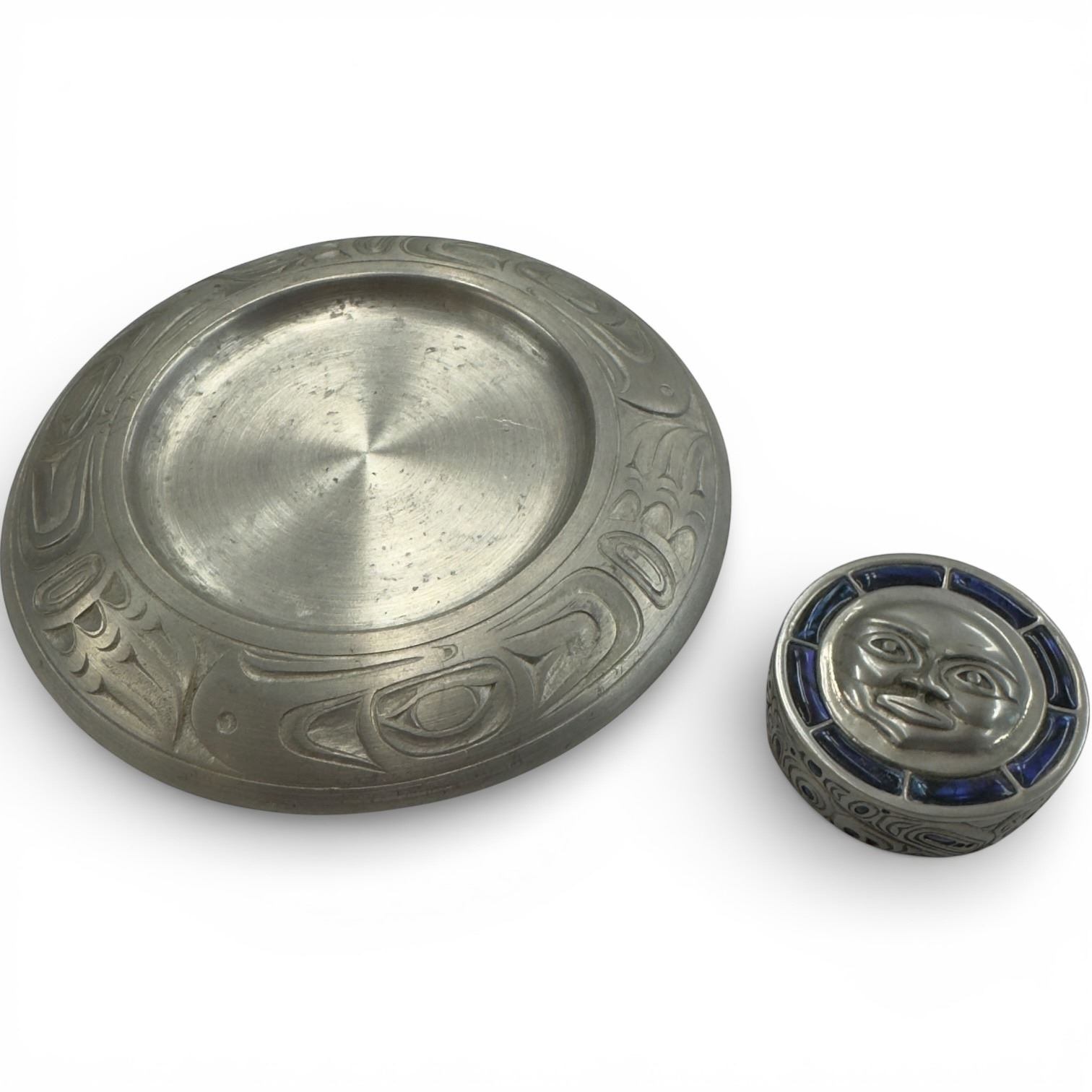 Boma Pewter Pillar Candle Stand (6" Diameter) & Lidded Enameled Pewter Trinket Box (.75" tall x 2" diameter)