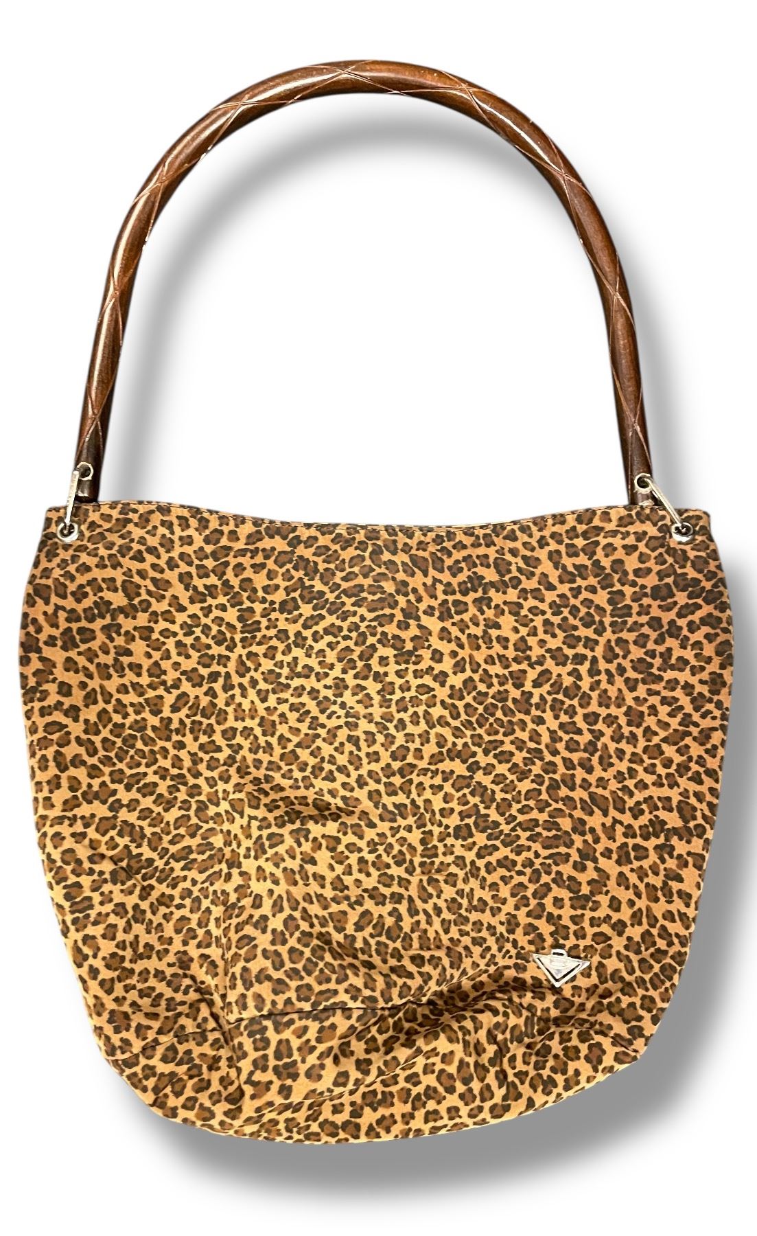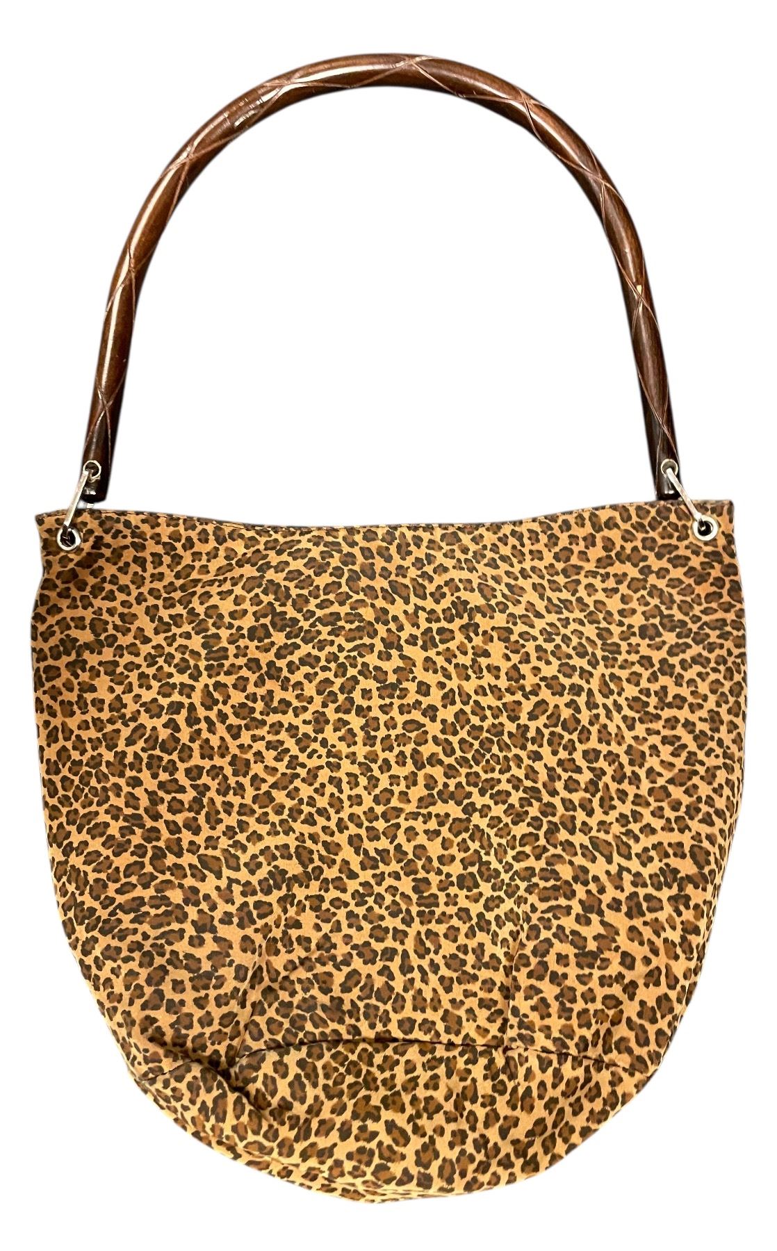 Bottega Veneta WOOD Handle Leopard Print Shoulder Bag