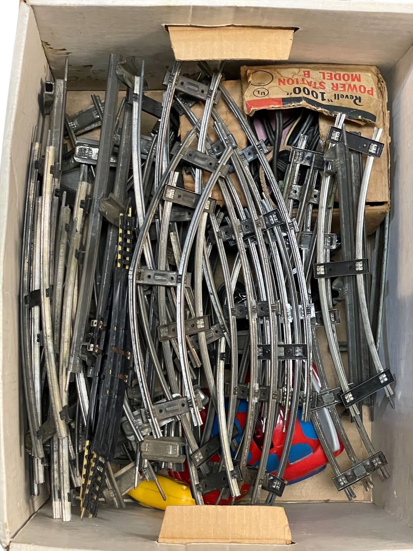 Box Full Of Assorted Model Train Equipment, Tracks, Carts, Etc..