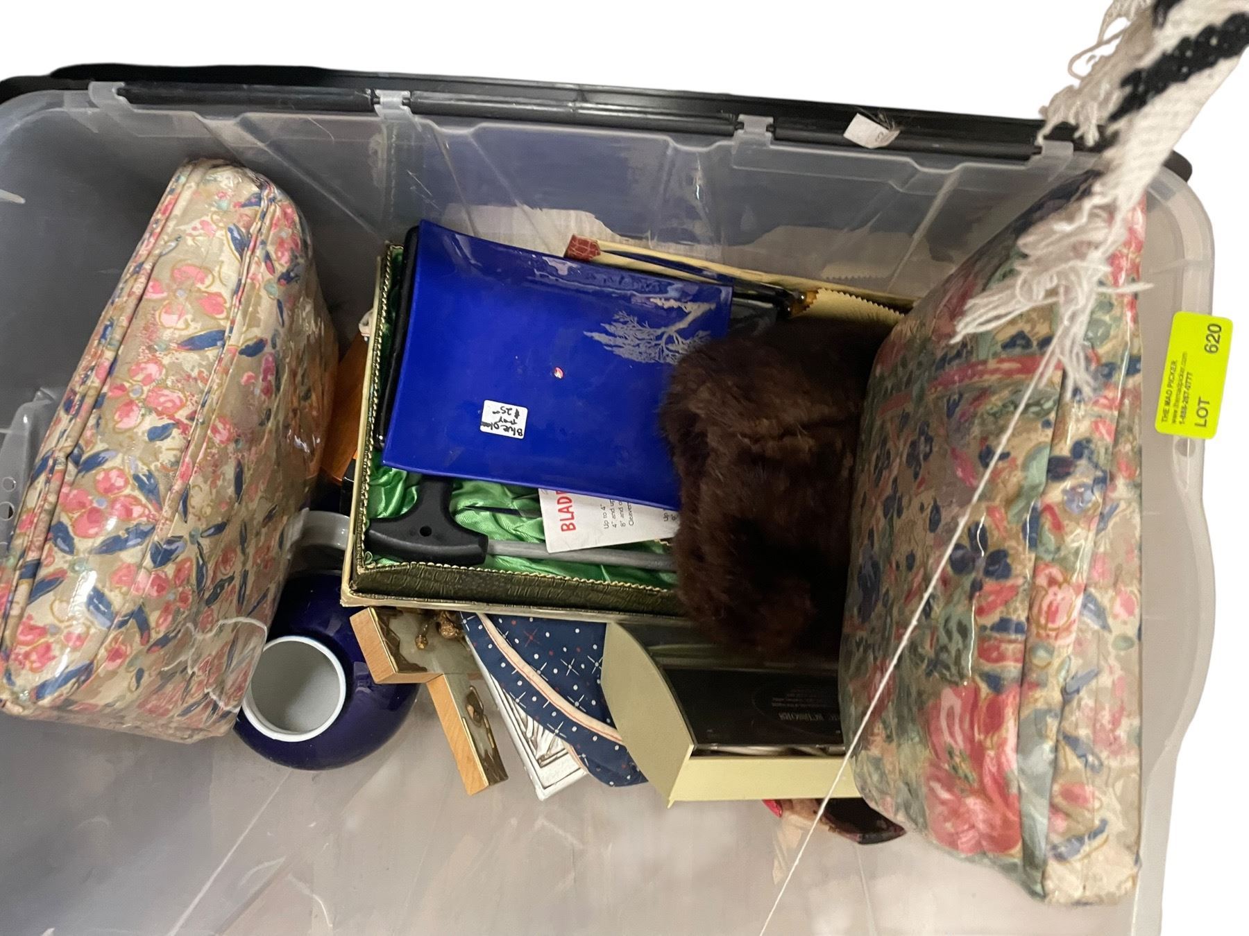 Box Lot of Bed Sheets, Blanket, Cutlery, Decorative Items and More