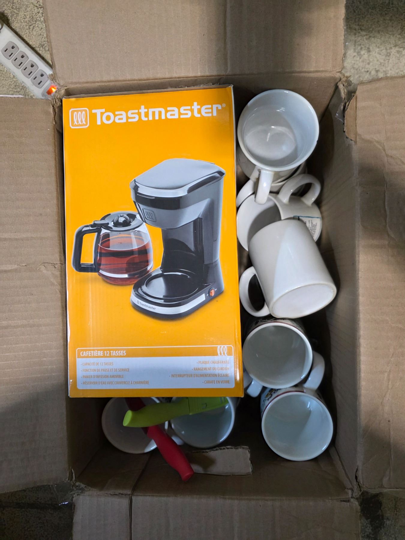 Box Lot of Ceramic Mugs & a Toastmaster Coffee Maker