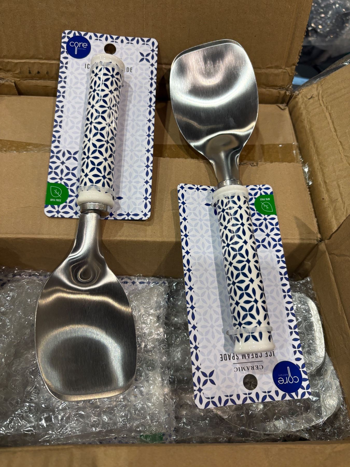 Box full of ice-cream spades with printed ceramic handles floral tile - approx. 40pcs