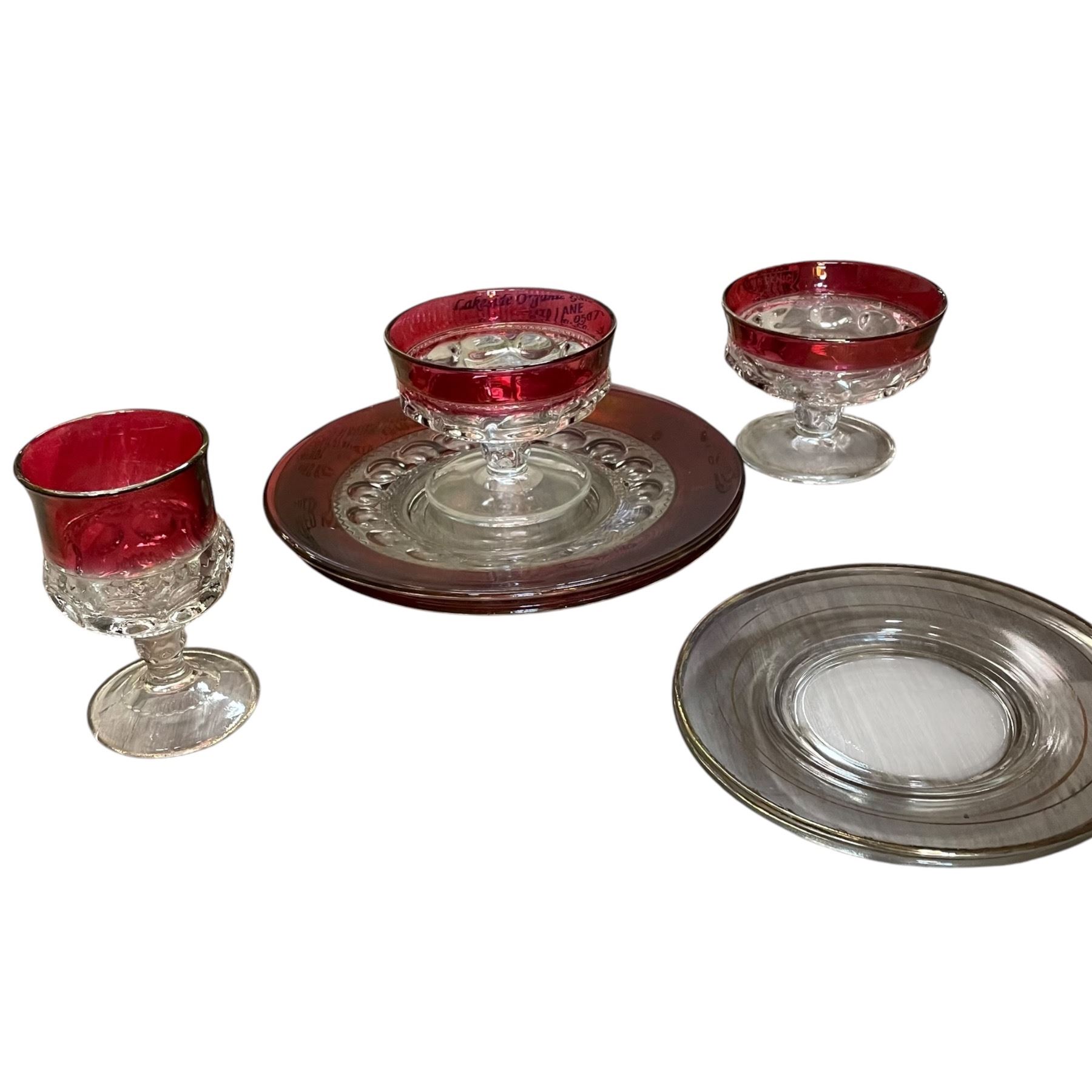 Box of Assort. Vintage Glassware with Ruby and Gold Rimmed Pieces