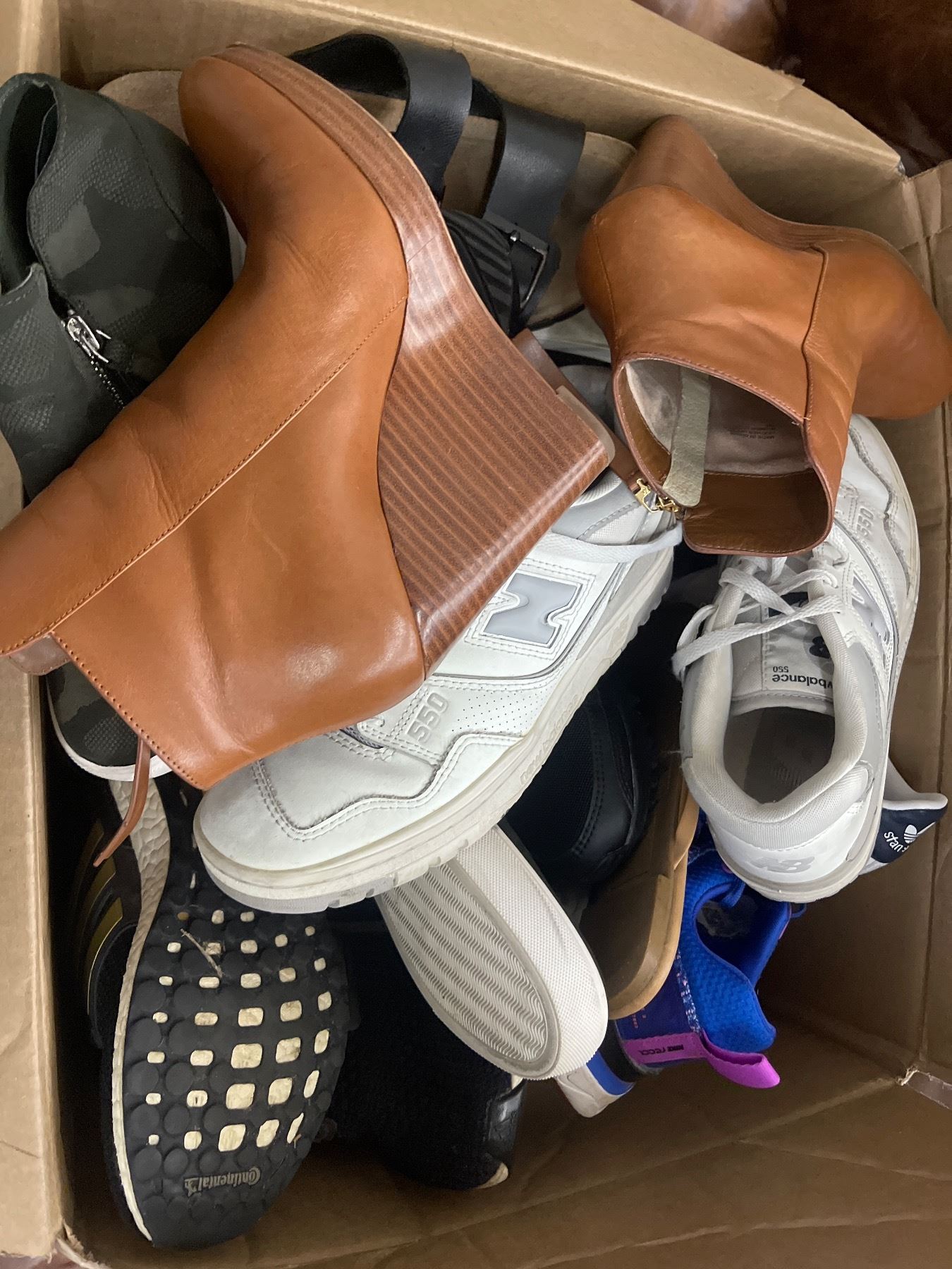 Box of Assorted Preowned Footwear * Variety of sizes, styles and materials