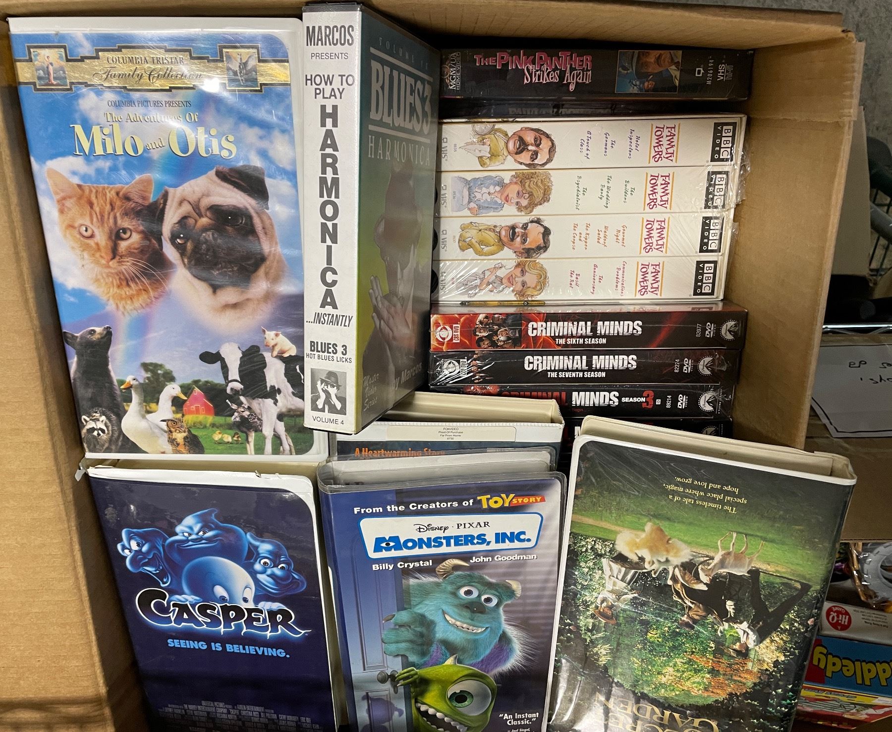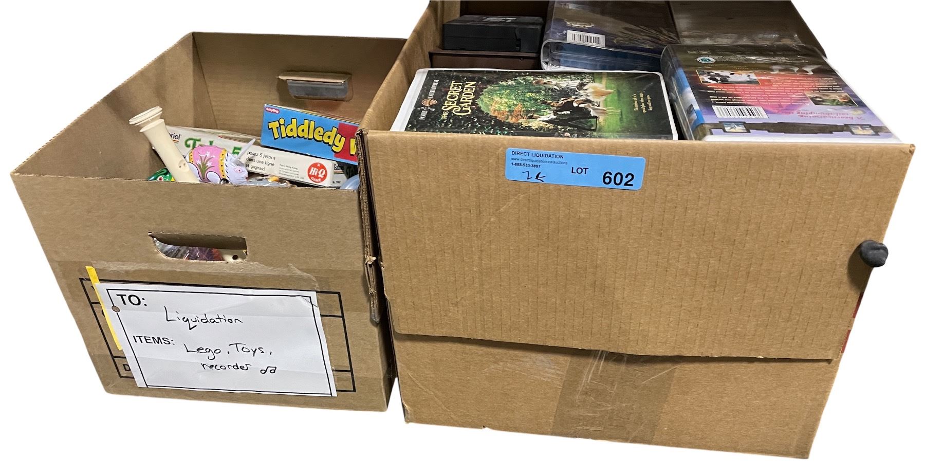 Box of VHS Tapes & Box of Lego, Toys, Recorder, Etc.