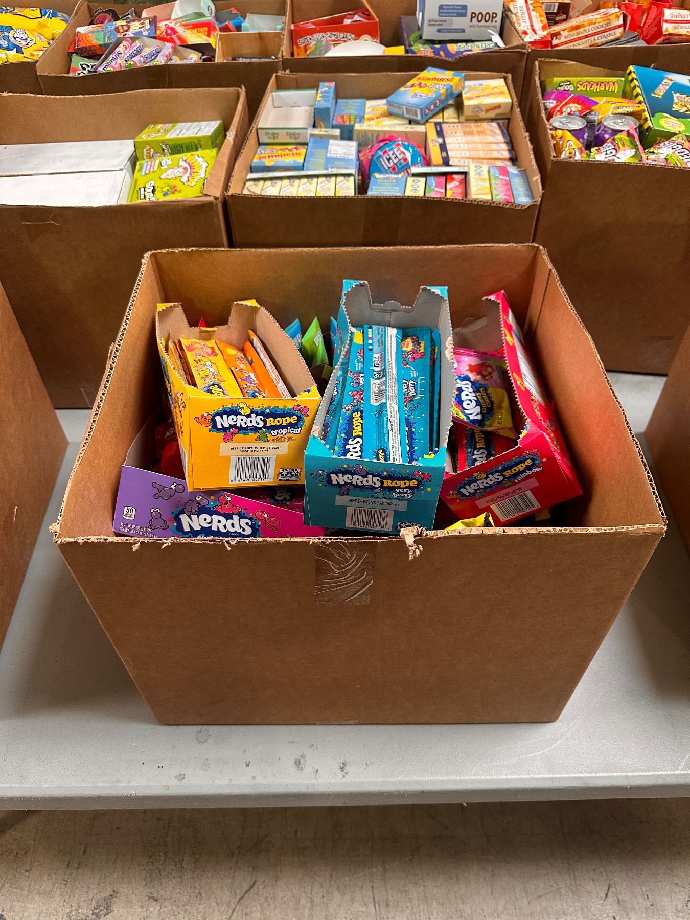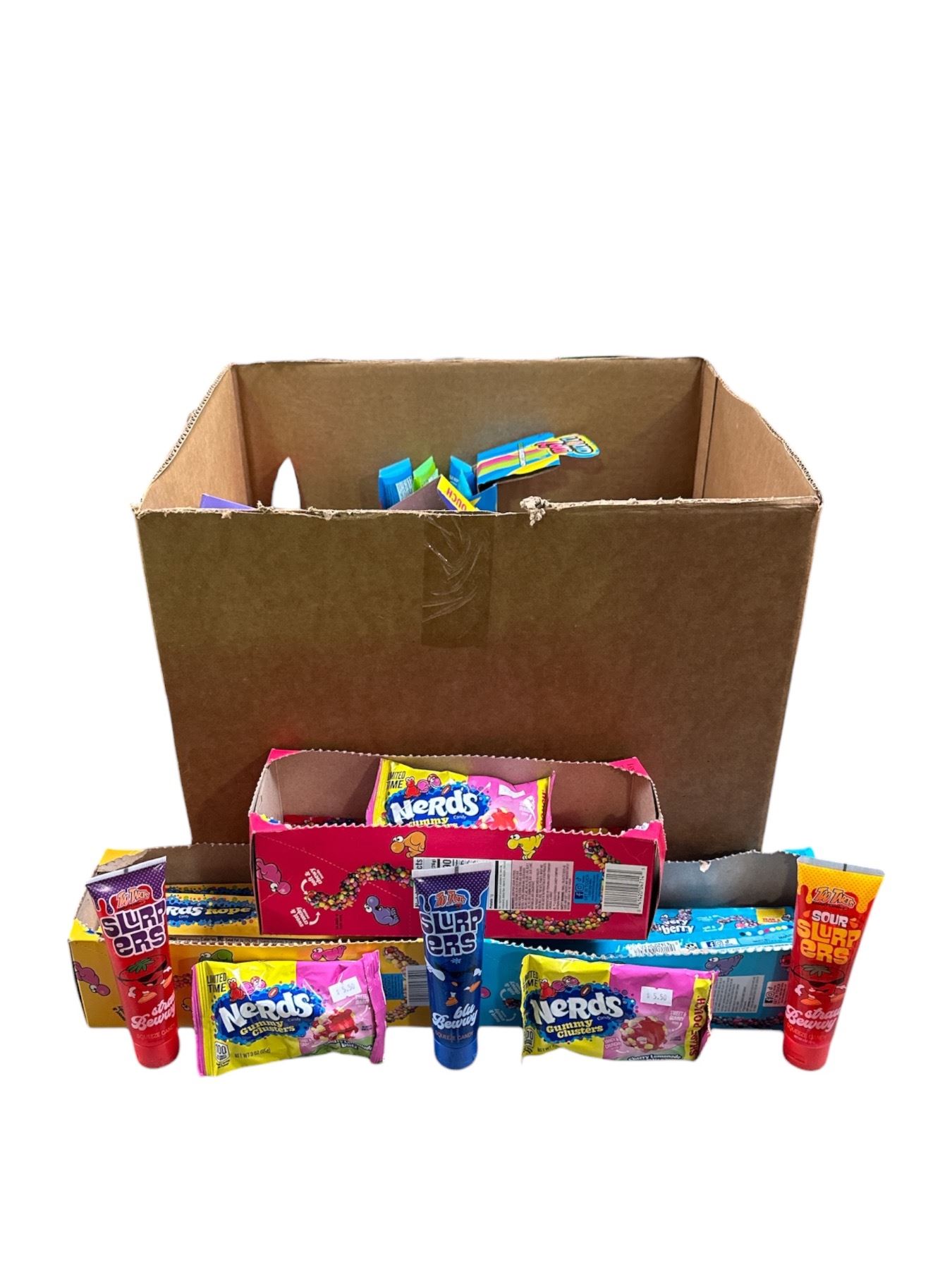 Box of Various Candy - Nerds Rope, Too Tarts Slurpers, Nerds Gummy Clusters, Etc.