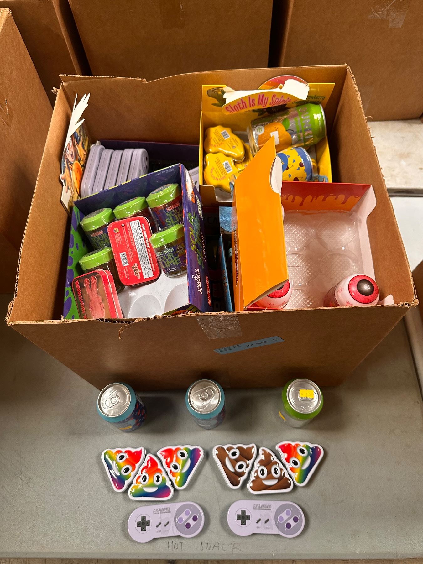Box of Various Candy - Poop Candy, Zombie Eyeball, Yummy Miami, Super Nintendo Candy, Etc.