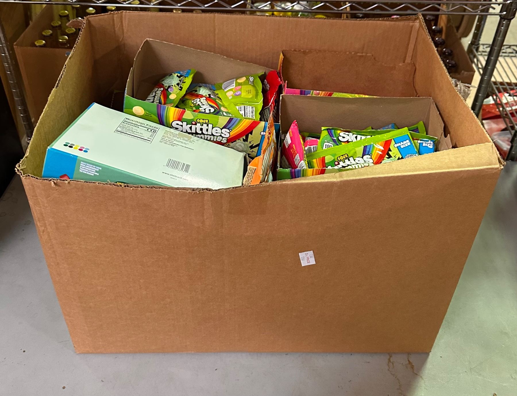 Box of Various Candy - Skittles Gummies, Starburst Goodies, Etc.