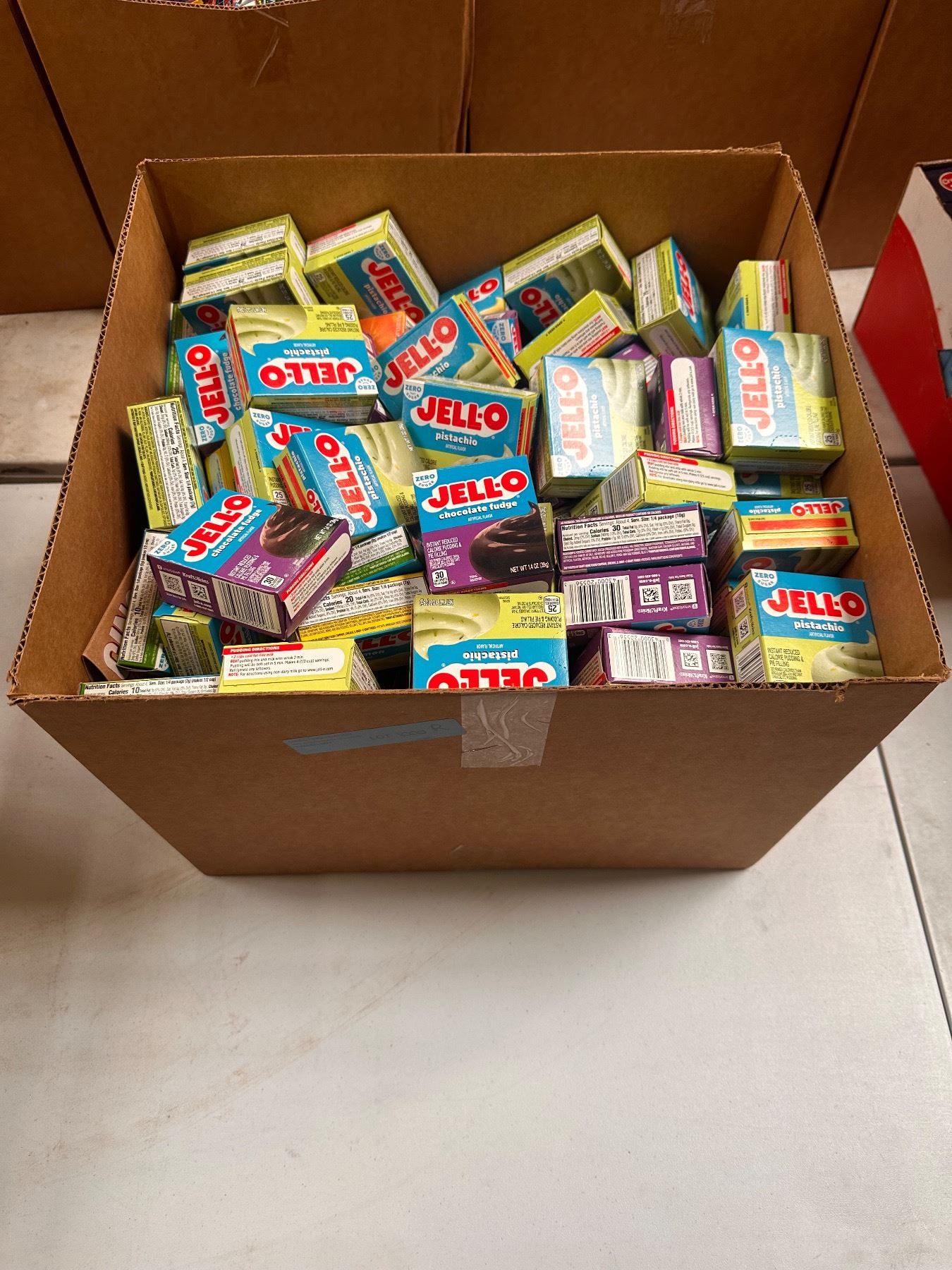 Box of Various Candy - Various Jello - Chocolate Fudge, Pistachio, Etc.