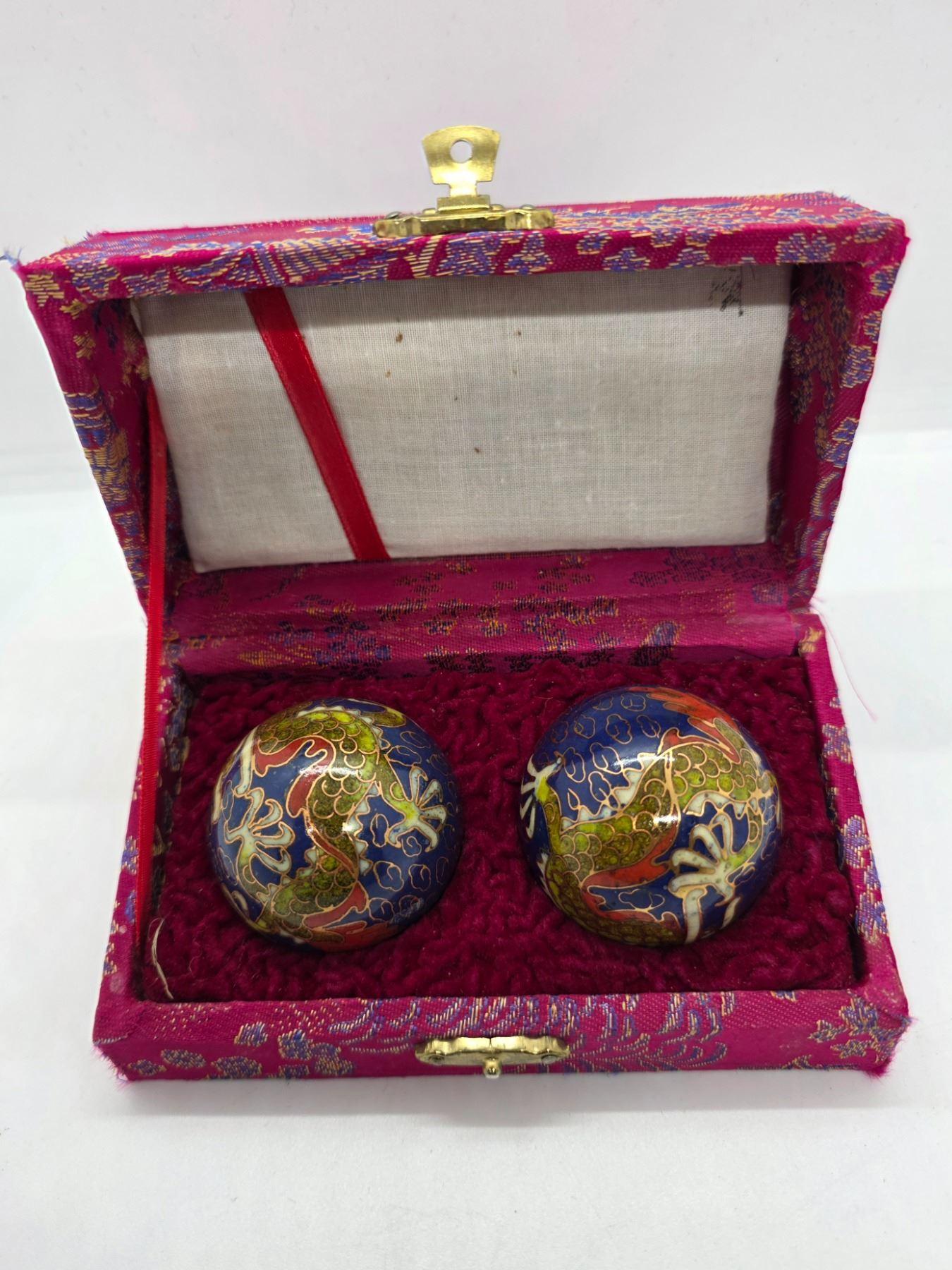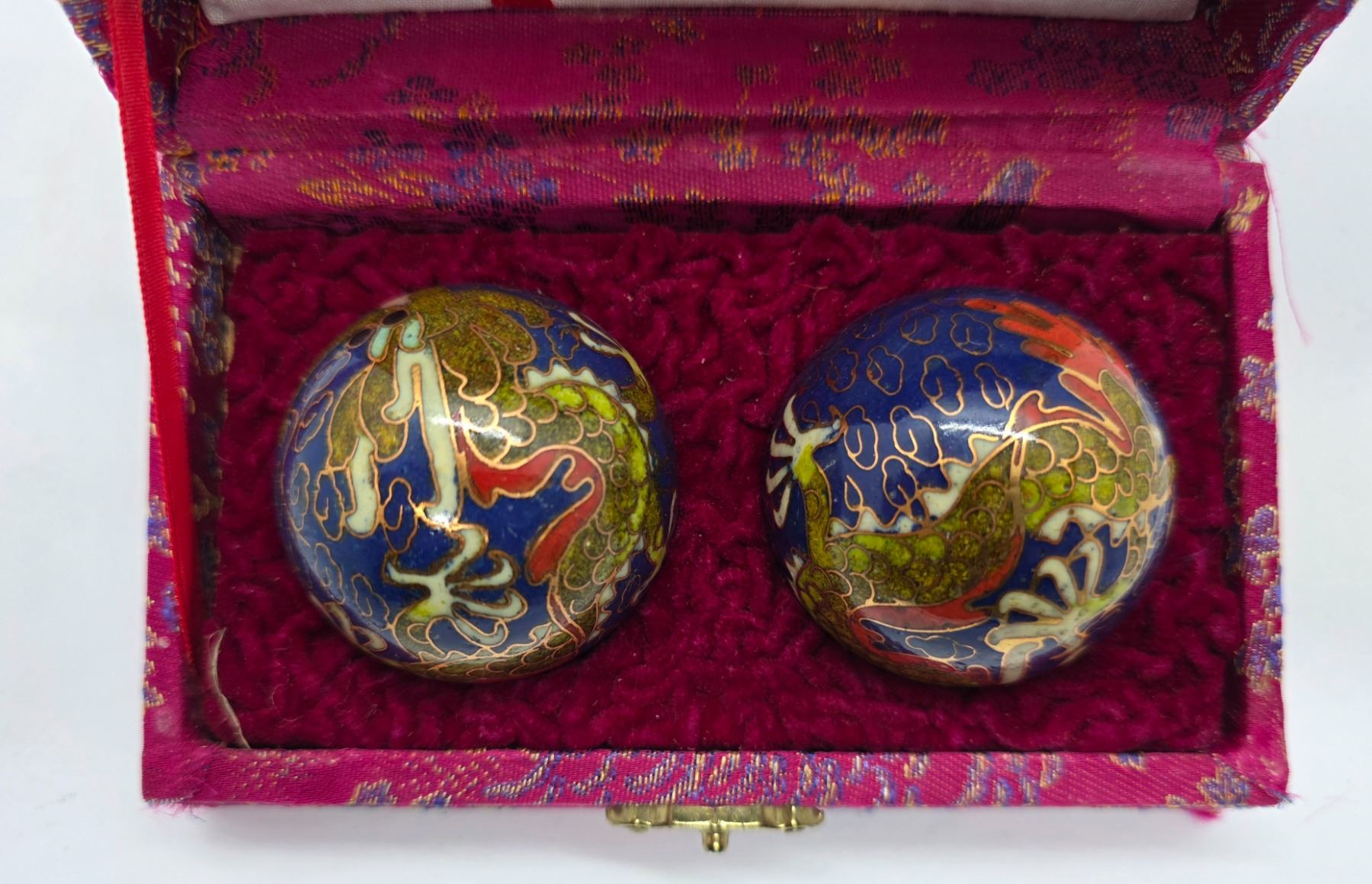 Boxed Pair of 2" Dragon Cloisonne Massage Balls