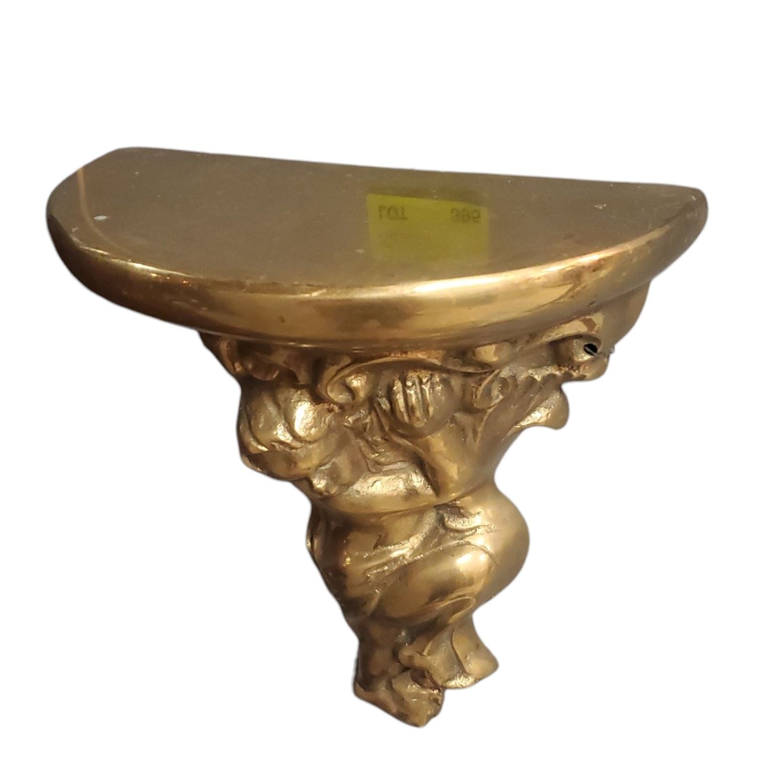 Brass wall sconce featuring a cherub design, measuring 12-Inch tall. Suitable for mounting on walls, this decorative piece combines aesthetic appeal with functionality. Made from brass material, it showcases traditional craftsmanship. Item is as pictured.