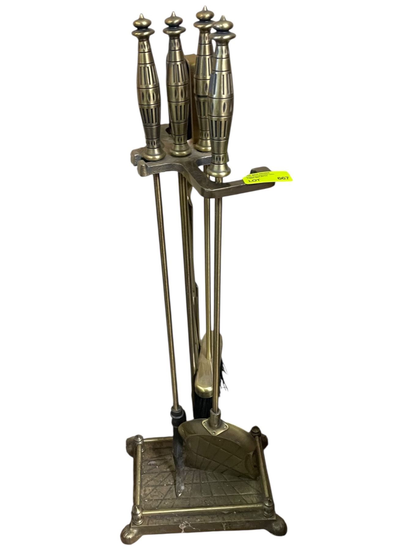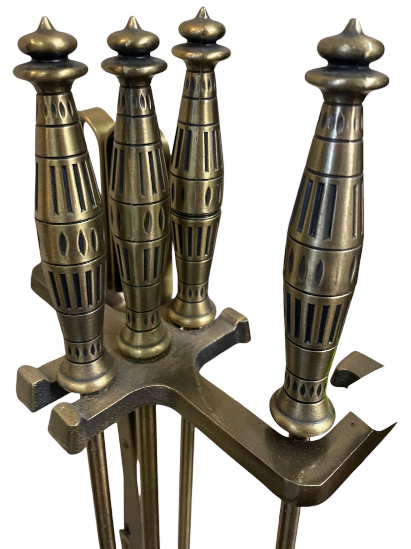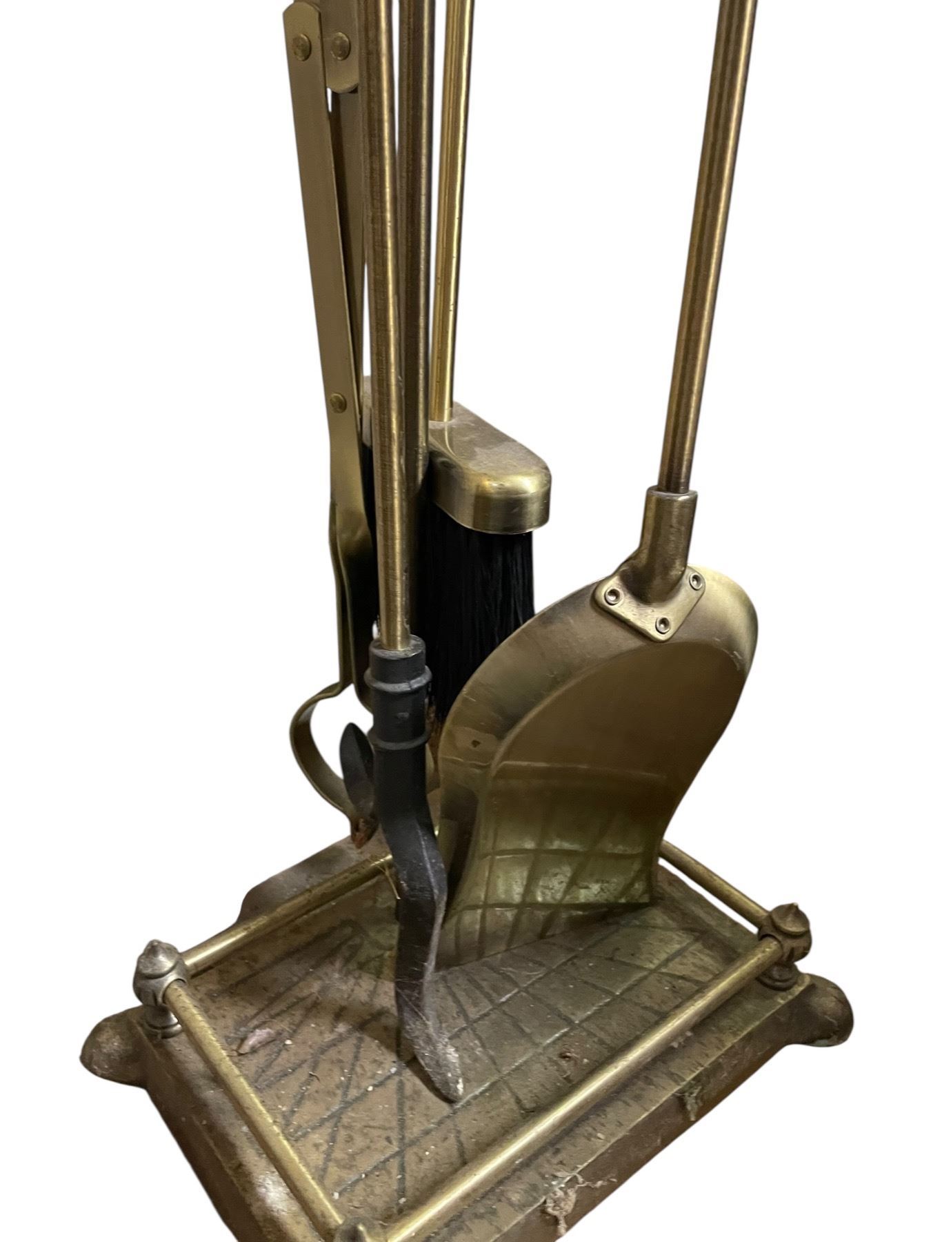 Brass Fire Place Tools on Stand * One handle needs repair