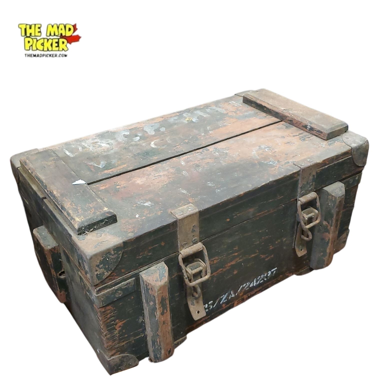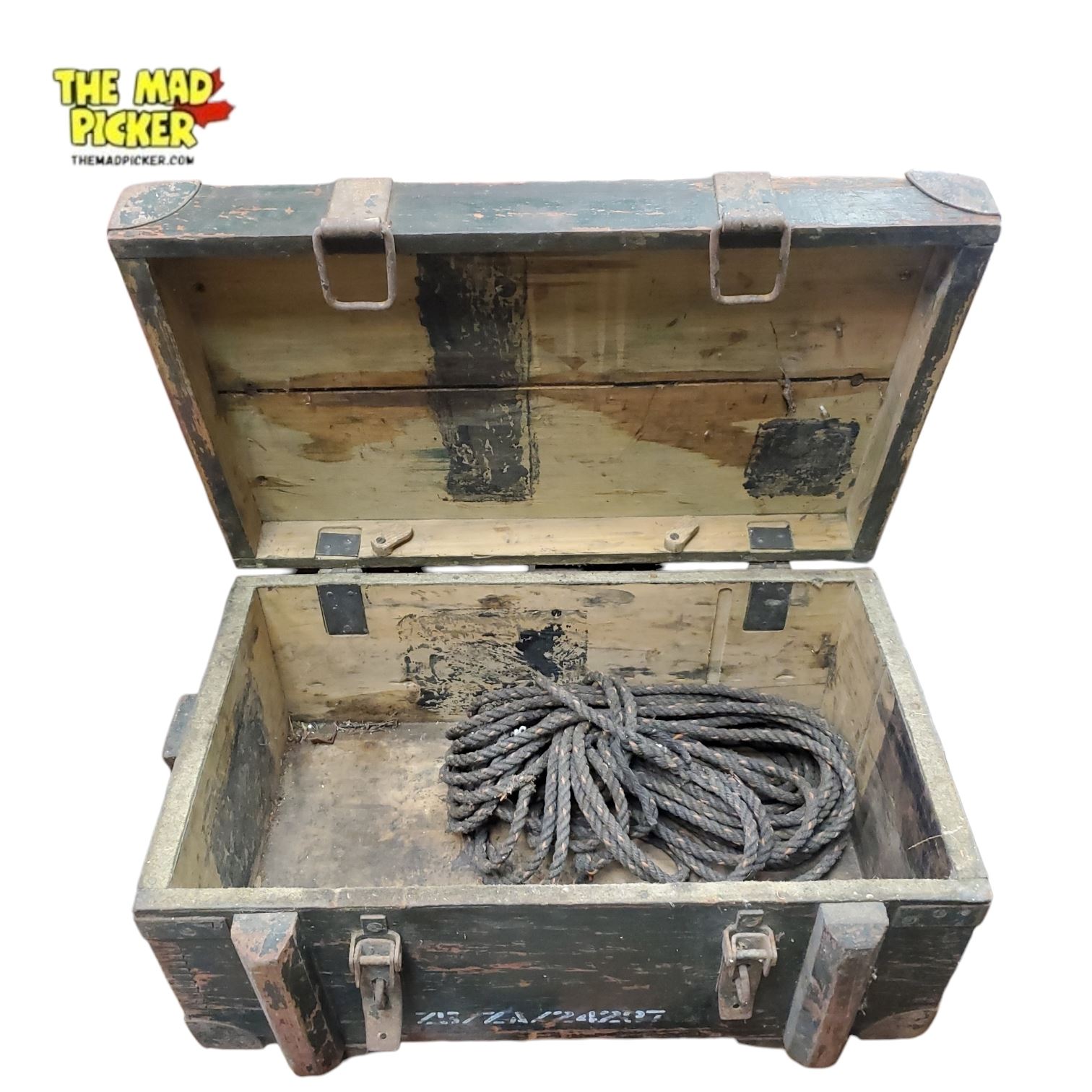 British WWII Green Painted Wooden box with Ammo Box and Rope 23.5x15x12.5in
