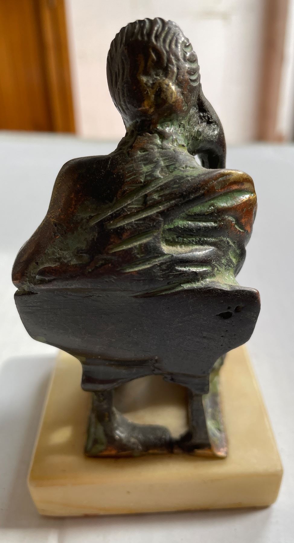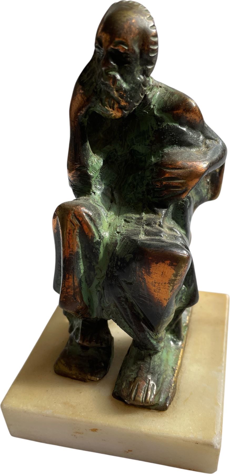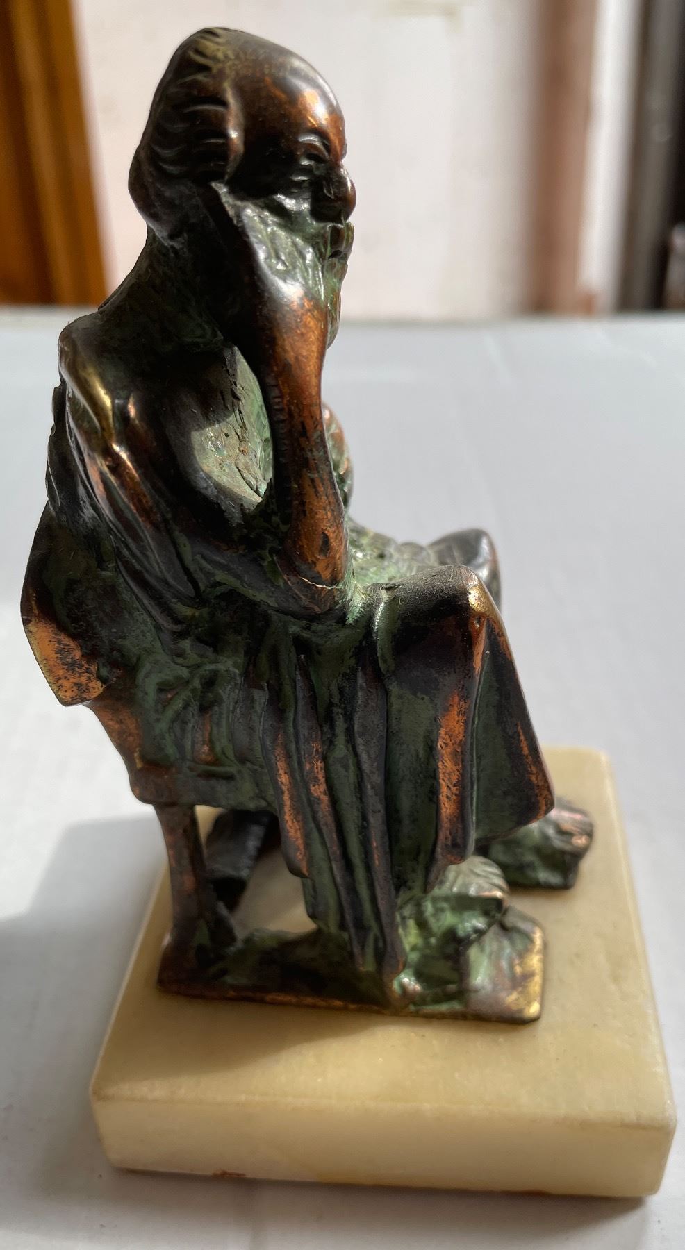 Bronze-Tone Seated Figure Sculpture on Stone Base