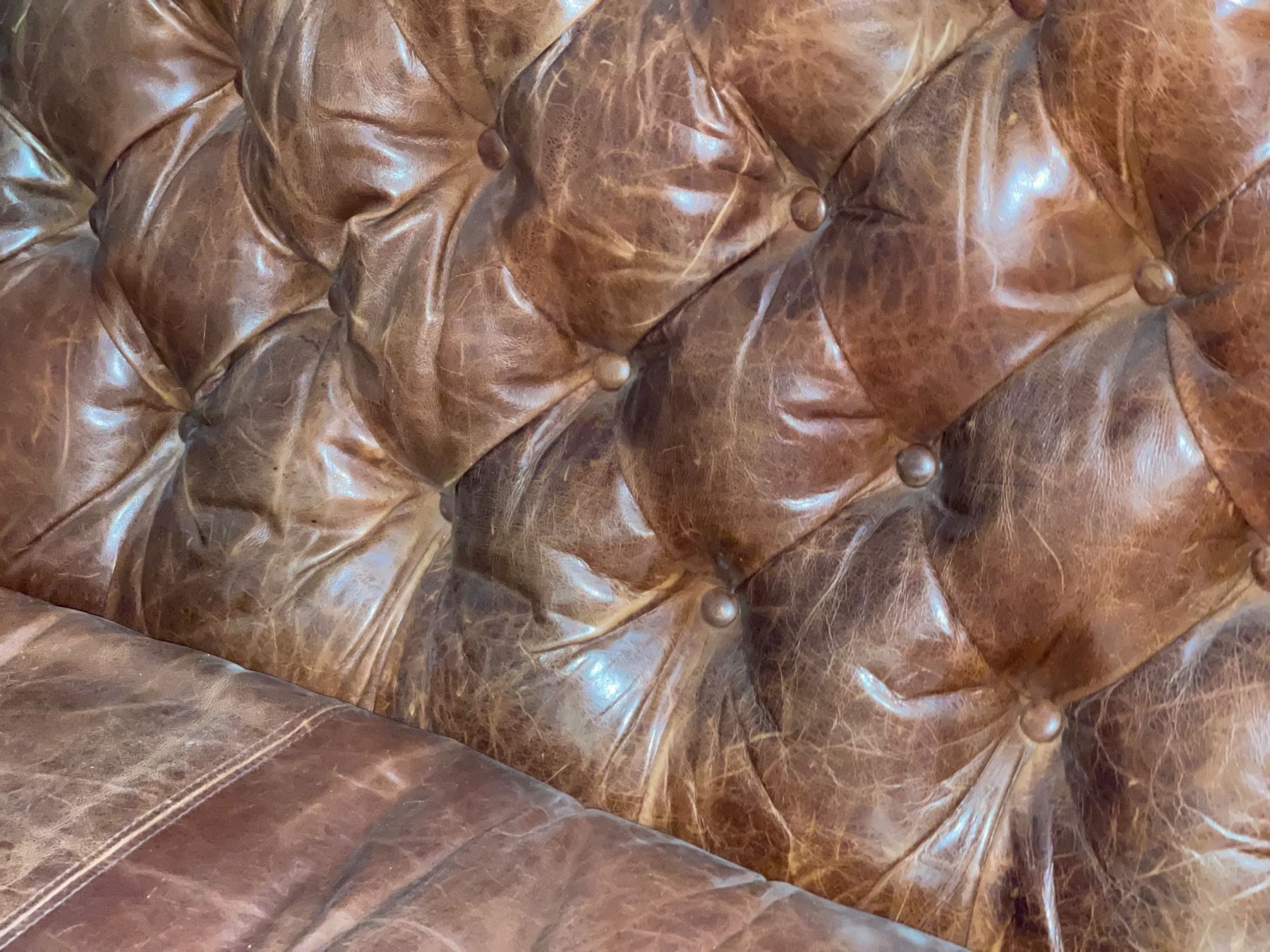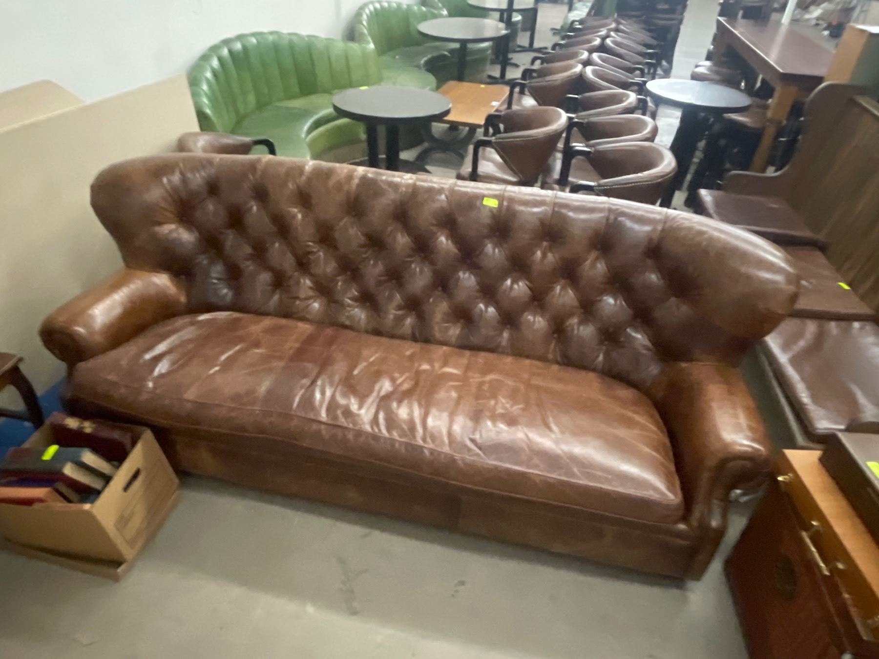 Brown Distressed Leather Sofa with Rolled Arms - 8' long