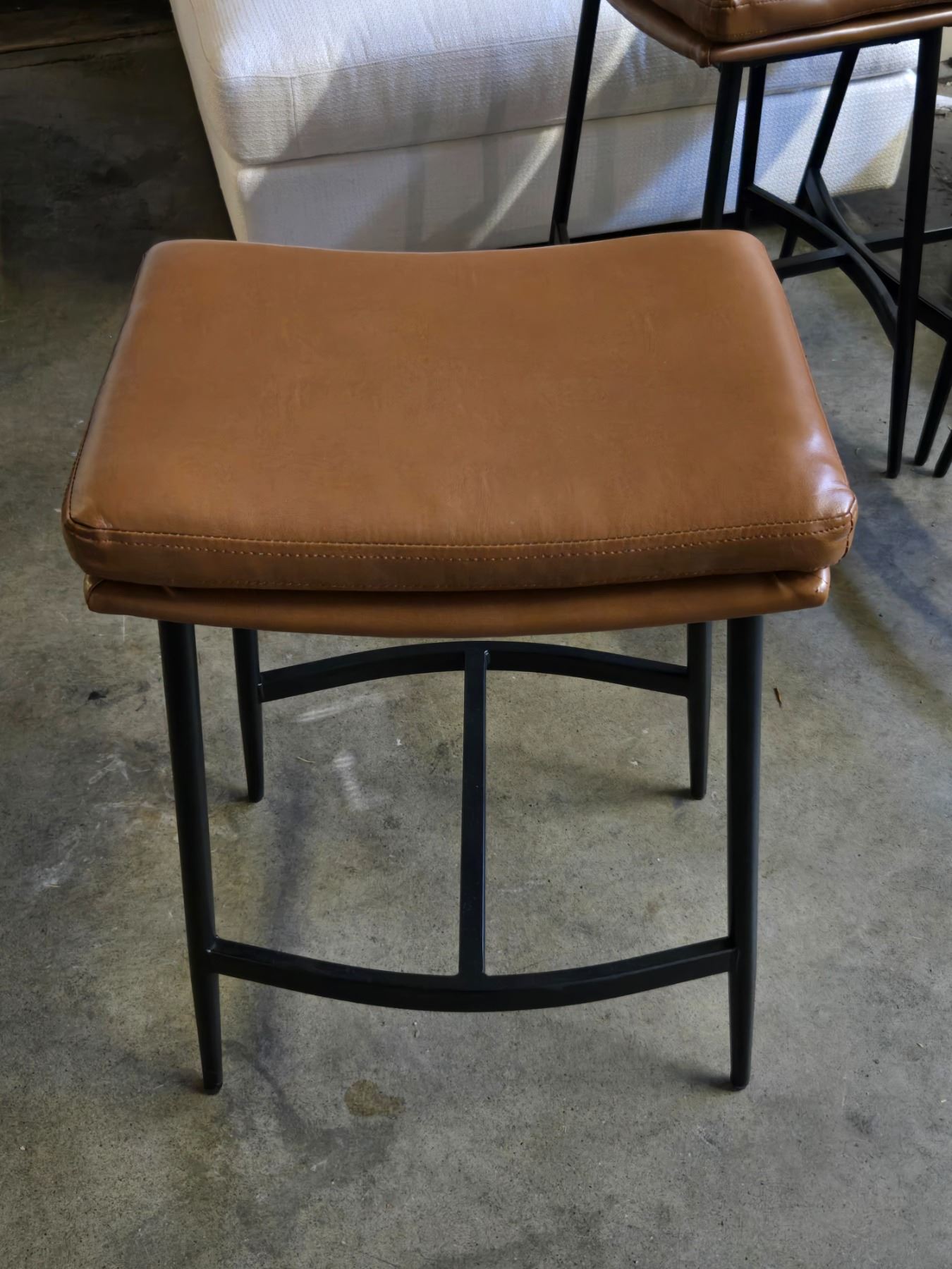 Brown Leather Counter height Bar Stools w/ Metal Legs - 17x13x26"